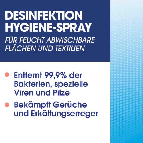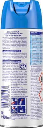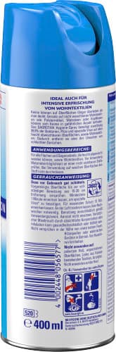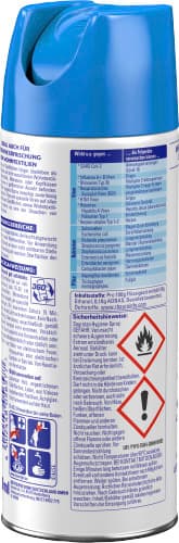 | Inhaltsstoffe | Inhaltsstoffe: Pro 100g Aerosol enthält 58g Ethanol, 0,1g ADBAS, Desinfektionsmittel, Duftstoffe. |