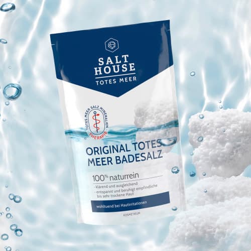 Das Wohlfühlbad aus der Natur. Bei empfindlicher und trockener Haut oder bei umweltbedingten Problemen wie Hautunreinheiten ist SALTHOUSE® Original Totes Meer Badesalz die ideale, regenerierende Pflege.Das reine, kristalline Badesalz enthält wertvolle Mineralien wie Kalzium, Magnesium, Kalium und Brom mit hautberuhigenden und feuchtigkeitsspendenden Eigenschaften.Der natürliche Totes Meer Mineralienkomplex bringt in einem entspannenden Bad die Haut wieder ins Gleichgewicht, pflegt sie geschmeidig glatt und bewahrt ihre natürliche Schönheit.Sehr gute Hautverträglichkeit bei Problemhaut dermatologisch bestätigt.
