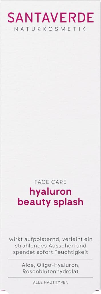 | Anwendungshinweis | Das hyaluron beauty splash eignet sich ideal als erfrischender Begleiter für jeden Hauttyp – ob zuhause, im Büro oder unterwegs. Das feuchtigkeitsspendende Spray kann morgens als vorbereitender Pflegeschritt nach der Reinigung, zwischendurch zur schnellen Auffrischung oder abends zur Beruhigung der Haut angewendet werden. Besonders empfehlenswert bei trockener, gereizter oder müder Haut, da der ultrafeine Sprühnebel sofort Feuchtigkeit spendet, die Haut glättet und ihr ein strahlend frisches Aussehen verleiht. Perfekt über der Pflege, unter dem Make-up oder als revitalisierender Boost für zwischendurch. |