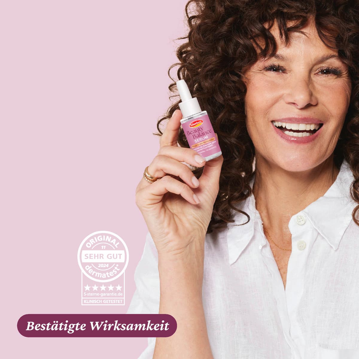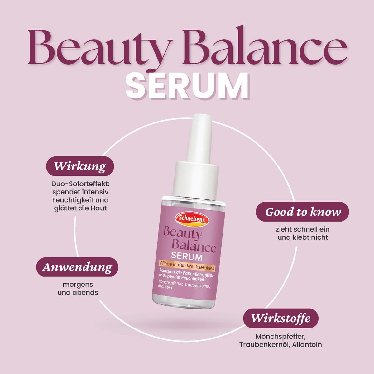 | Anwendungshinweis | Gesicht reinigen, eine kleine Menge Serum auf die Hände geben und sanft einmassieren. Dabei Augen- und Lippenpartie aussparen. Täglich morgens und abends als dritten Schritt der Beauty Balance Pflegeroutine anwenden. |