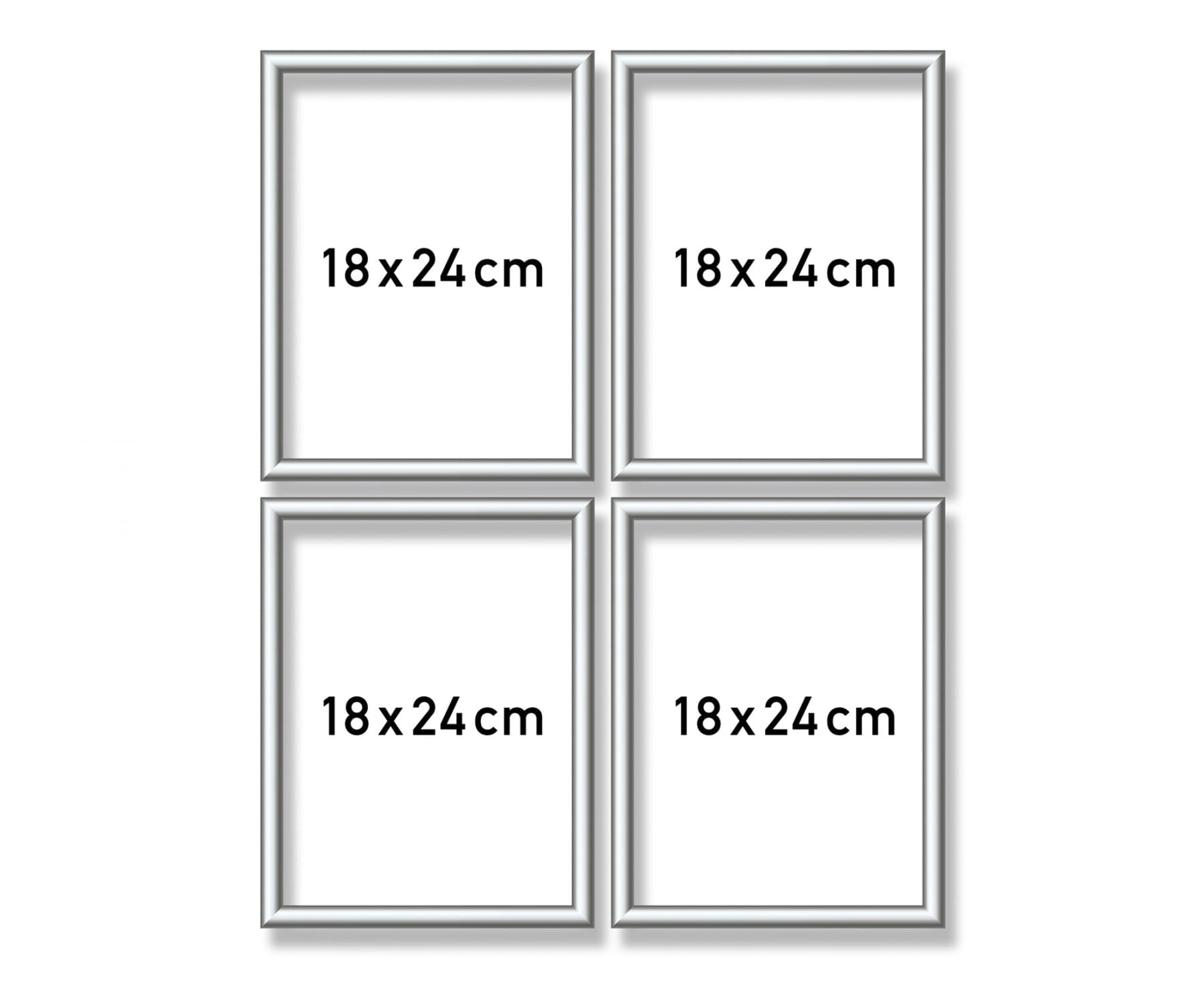 Der passende Alu-Rahmen für Ihr Meisterwerk!Jedes Gemälde kommt erst dann richtig zur Geltung, wenn es schön gerahmt ist. Die Auswahl eines passenden Rahmens ist bei der großen Auswahl sehr schwer. SCHIPPER Arts&Crafts hat einen Alurahmen ausgesucht, der nicht nur zu allen Malen-nach-Zahlen-Motiven, sondern auch zu jeder Wohnungseinrichtung passt. Der eloxierte Rahmen mit seinem schmalen Profil verleiht dem Gemälde Ausdruckskraft und umrahmt es in dezenter Weise. Die Rahmen werden in einzelnen Rahmenleisten zur problemlosen Selbstmontage geliefert. Jede Packung enthält das erforderliche Befestigungsmaterial mit einer Montageanleitung. Die Bilderrahmen gibt es für die Formate 24/30 cm, 40/50 cm, 50/60 cm, 40/80 cm, Triptychon 50/80 cm, Triptychon 120/40 cm, Diptychon 50/80 cm und Quattro 18/24 cm.Inhalt der Packung:16 Rahmenleisten für 4 Bilderrahmen Quattro 18 x 24 cm mit Befestigungsmaterial (Eckverbinder, Federn, Aufhänger und Schrauben), Montageanleitung.