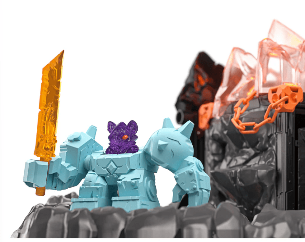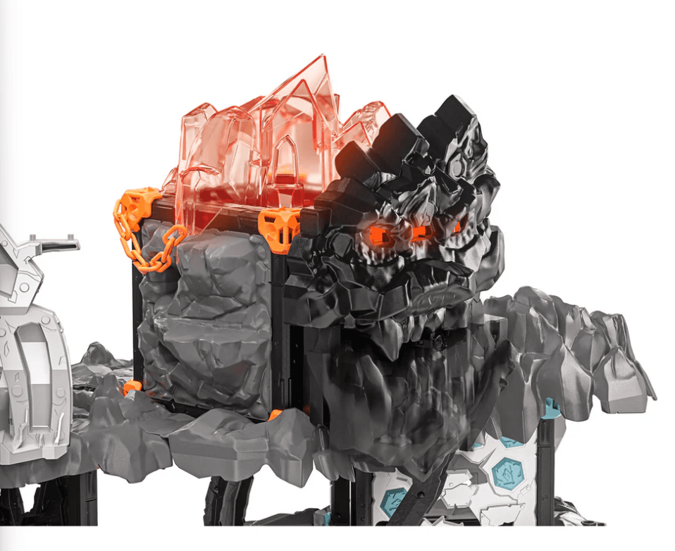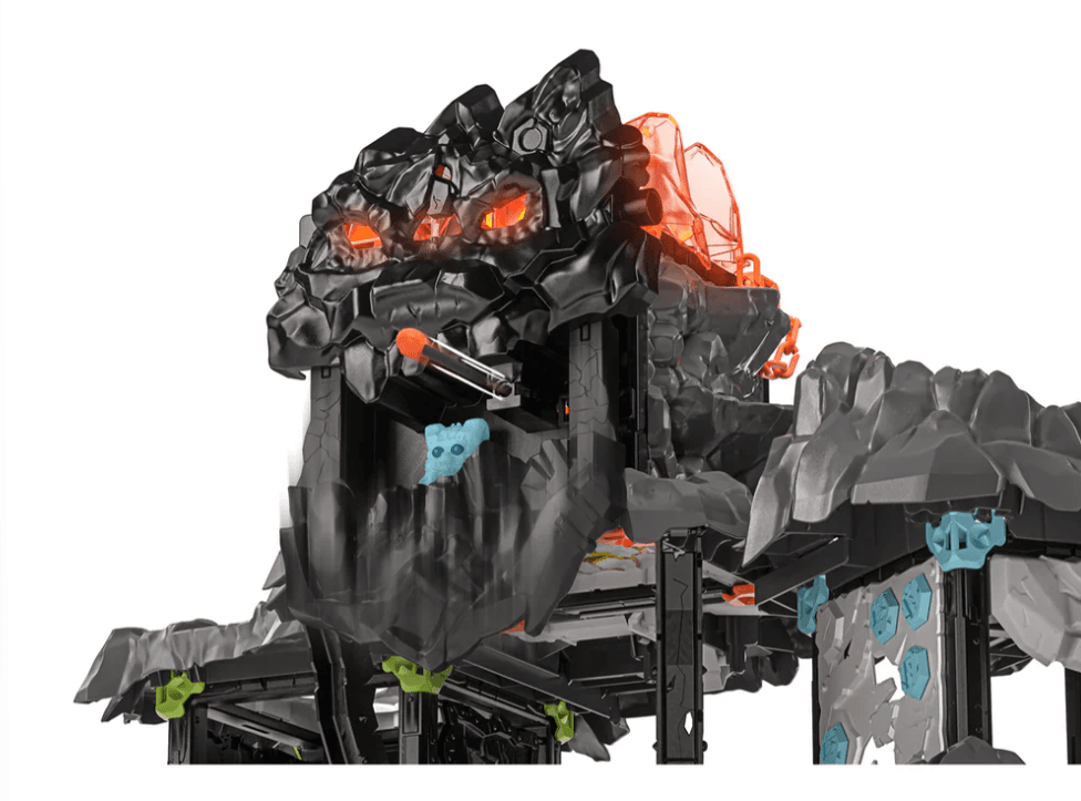 Der MasterCave wirkt wie eine uneinnehmbare Festung. Schon von Weitem sieht man den gefährlichen Drachenkopf mit dem riesigen Maul. Wenn es sich öffnet, sollte man schnell in Deckung gehen. Im Maul verbirgt sich nämlich eine Schusswaffe. Doch das ist nicht das einzige Hindernis. Auf dem Weg durch den MasterCave lauern Falltreppen und Bodenfallen. Alles, um den Superkristall zu schützen, der sich im Inneren der Festung verbirgt. Wer ihn besitzt, hat die Macht über ganz ELDRADOR®. Kein Wunder, dass er so aufwendig beschützt wird. Wer das Abenteuer auf sich nimmt, muss gefährlichen Schwinghammern ausweichen und vor Steingeschossen in Deckung gehen. Kein leichtes Unterfangen. Gelingt es einem Eindringling, bis ganz oben zum Superkristall zu kommen?