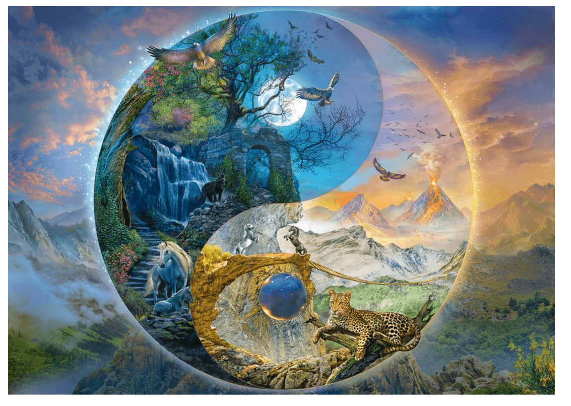 Erleben Sie die Harmonie von Natur und Spiritualität mit dem Yin & Yang Bergwelt Puzzle von Künstlerin Silvia Christoph. Dieses kunstvoll gestaltete 1.000 Teile Puzzle zeigt eine faszinierende Berglandschaft, die das Symbol von Yin und Yang integriert – ein Ausdruck von Balance, Ruhe und Energie. Die detailreiche Illustration und die hochwertige Verarbeitung machen dieses Puzzle zu einem meditativen Erlebnis für Puzzlefreunde und Kunstliebhaber.