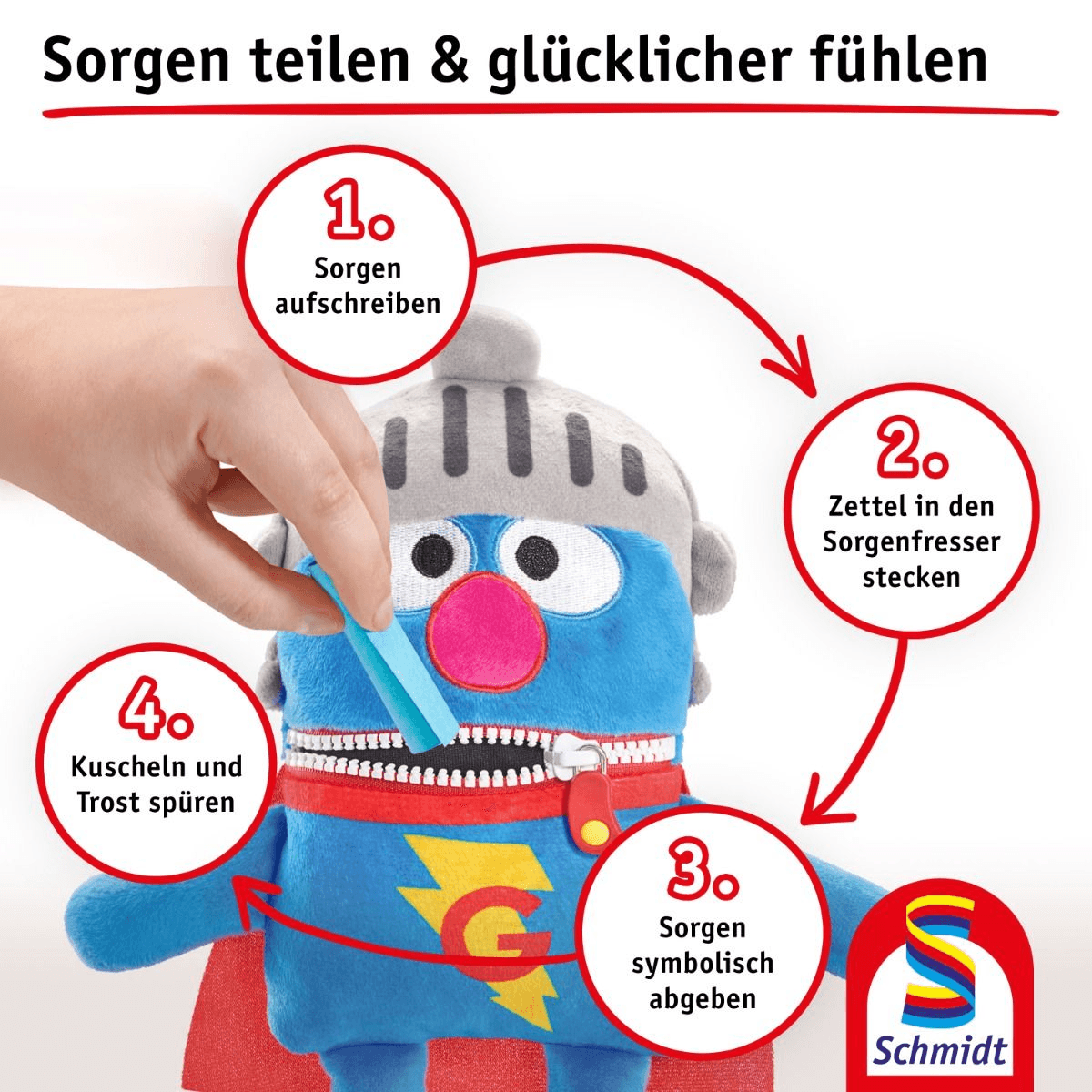 Ob im Kinderzimmer, unterwegs oder als liebevolles Geschenk zur Geburt oder zum Geburtstag: Der Sorgenfresser Super‑Grobi steht für Mut, Trost und ganz viel Kuschelspaß.