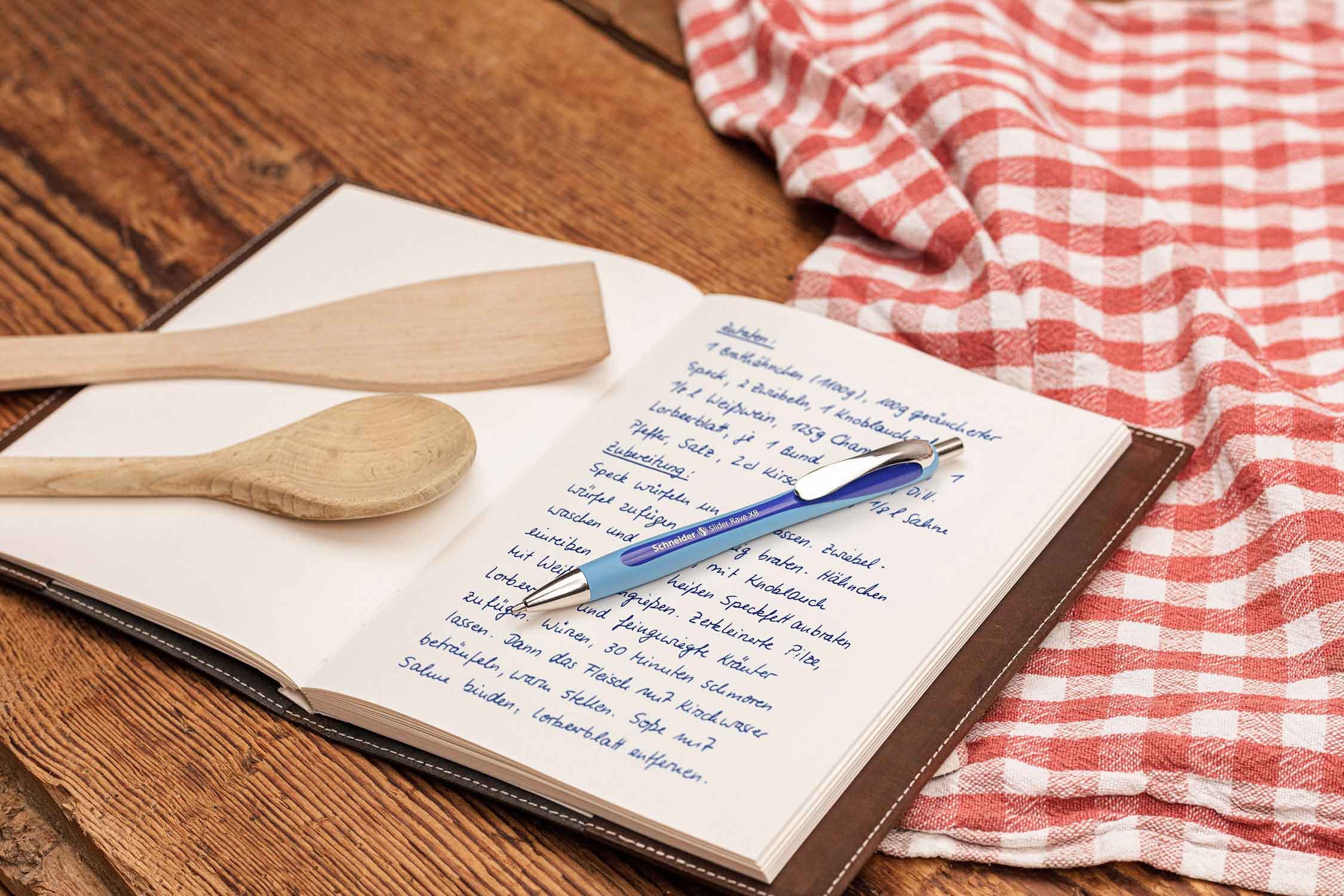 Kugelschreiber mit Viscoglide®-Technologie für außergewöhnlich leichtes und gleitendes Schreiben in extrabreiter Strichstärke (XB). Schreibfarbe blau. Dokumentenecht nach ISO 12757-2. Die auswechselbare Großraummine Slider 755 XB mit verschleißfester Edelstahlspitze garantiert, dass der große Pastenvorrat vollständig und schmierfrei genutzt werden kann. Die Schrift trocknet schnell - auch auf glattem Papier - und bleibt sogar bei anschließendem Markieren mit Textmarkern wischfest. Der Slider Rave ist durch das clevere Plug+Play-System mit verschiedenen Minenformaten nachfüllbar. Der ergonomisch geformte und großzügig gummierte Schaft ermöglicht eine entspannte und sichere Schreibhaltung ohne Ermüdung der Hand. Clip aus stabilem Metall.
