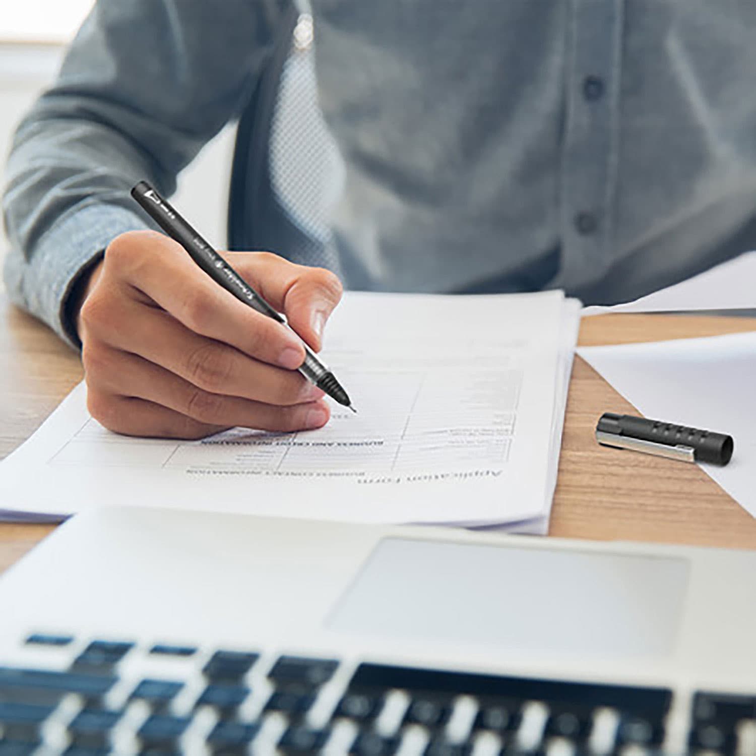 Dieser Tintenroller kombiniert Funktionalität mit durchdachtem Design. Die feine Spitze mit einer Strichstärke von ca. 0,5 mm gleitet mühelos über das Papier und eignet sich hervorragend für detaillierte Notizen und saubere Unterschriften. Der große Tintenspeicher wird restlos aufgebraucht, was eine lange Nutzungsdauer sicherstellt. Für den sicheren Transport und die Befestigung an Unterlagen oder in der Tasche verfügt die Kappe über einen stabilen Metallclip.