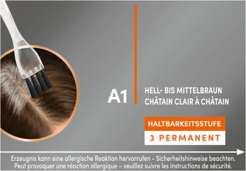 Haarfärbemittel können schwere allergische Reaktionen hervorrufen. Lesen und befolgen Sie die Anweisungen. Dieses Produkt ist nicht für die Anwendung bei Personen unter 16 Jahren bestimmt. Vorübergehende „Schwarze Henna“- Tätowierungen können das Allergierisiko erhöhen. Färben Sie Ihr Haar nicht, wenn: