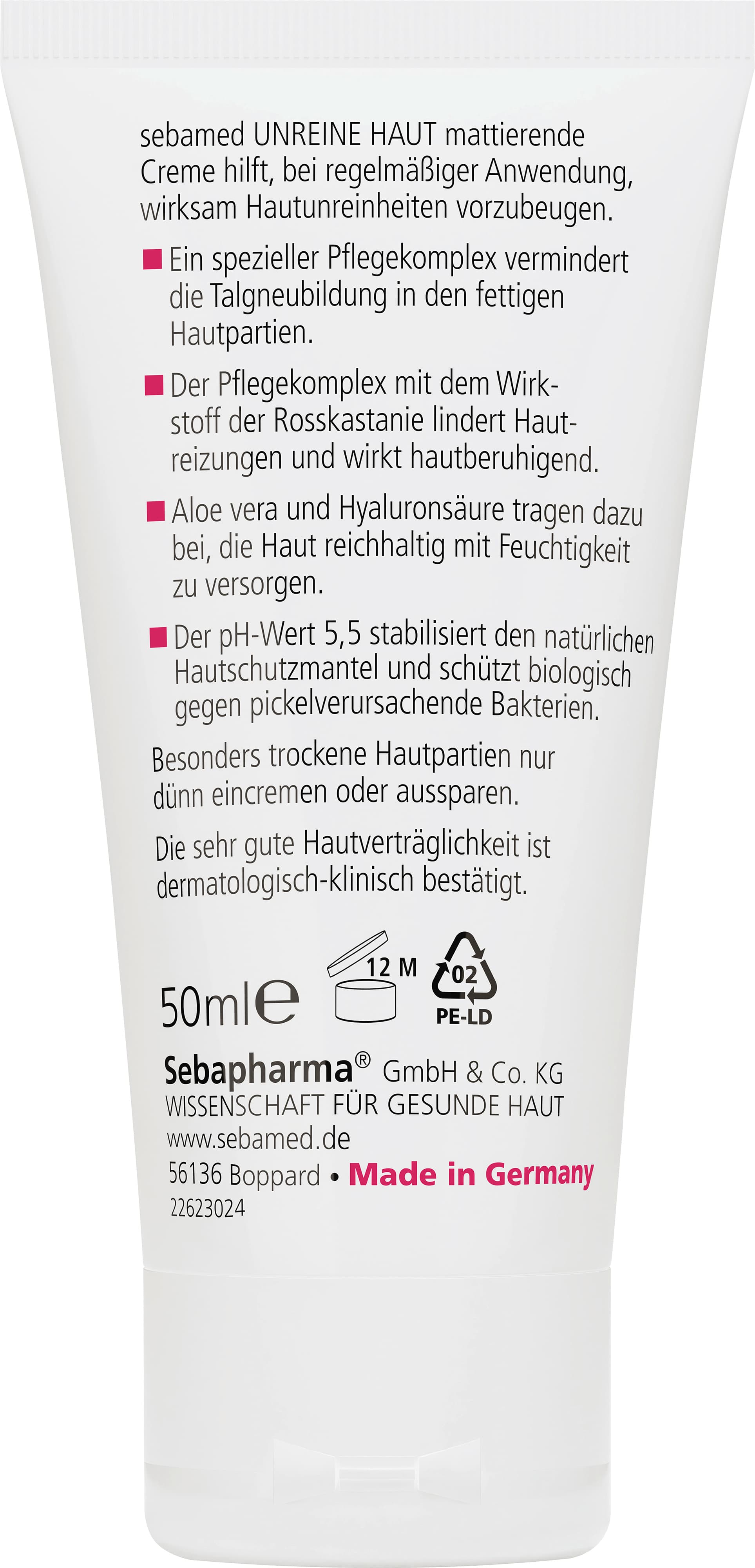 - beruhigende Pflege bei unreiner Haut mit mattierendem Effekt.