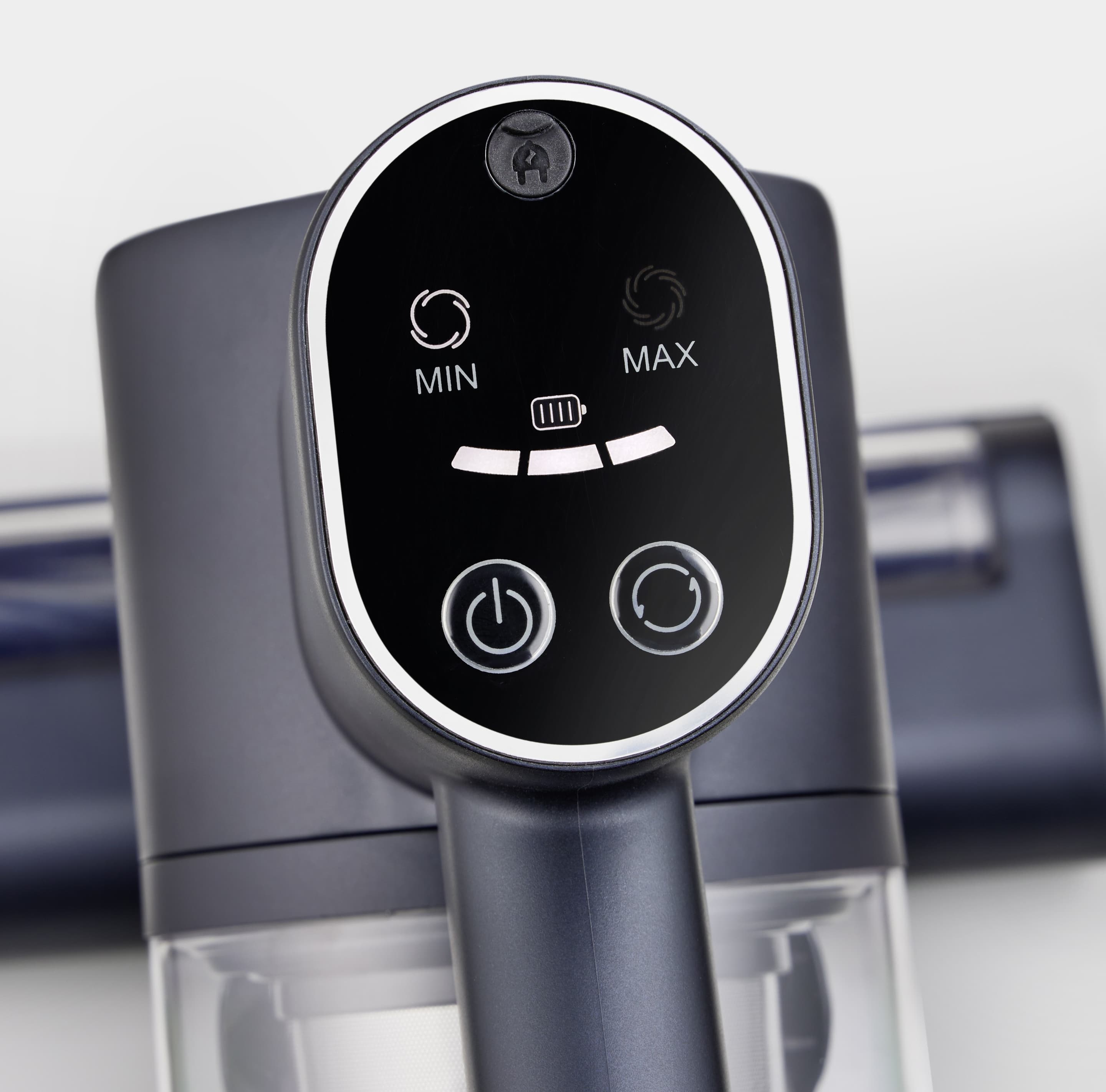 • Kraftvolle Li-lonen Akku sorgt für eine Laufzeit von bis zu 40 Minuten, ohne Beutel für große Flächen hohes Behältervolumen von 0.5L und keine Folgekosten für Staubbeutel