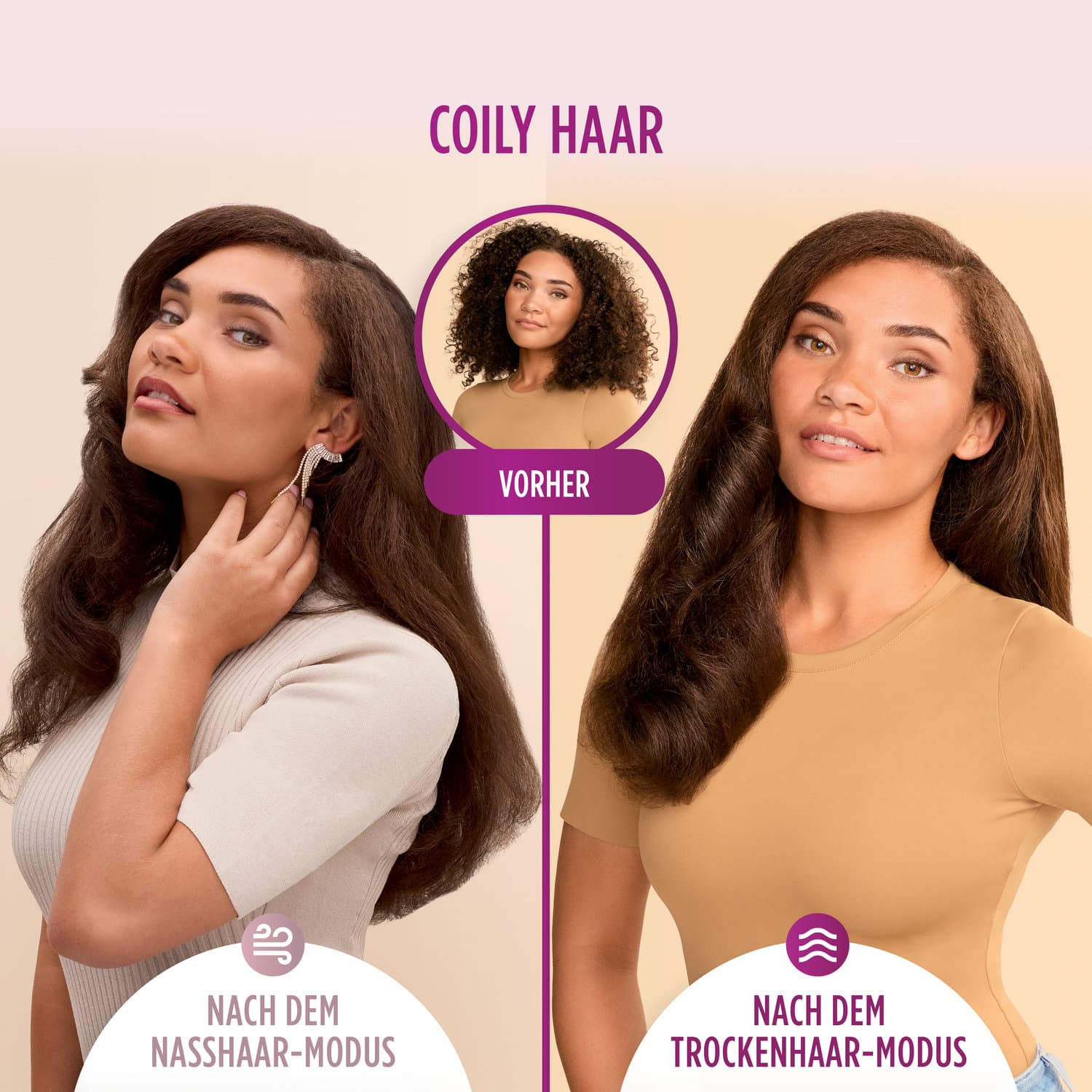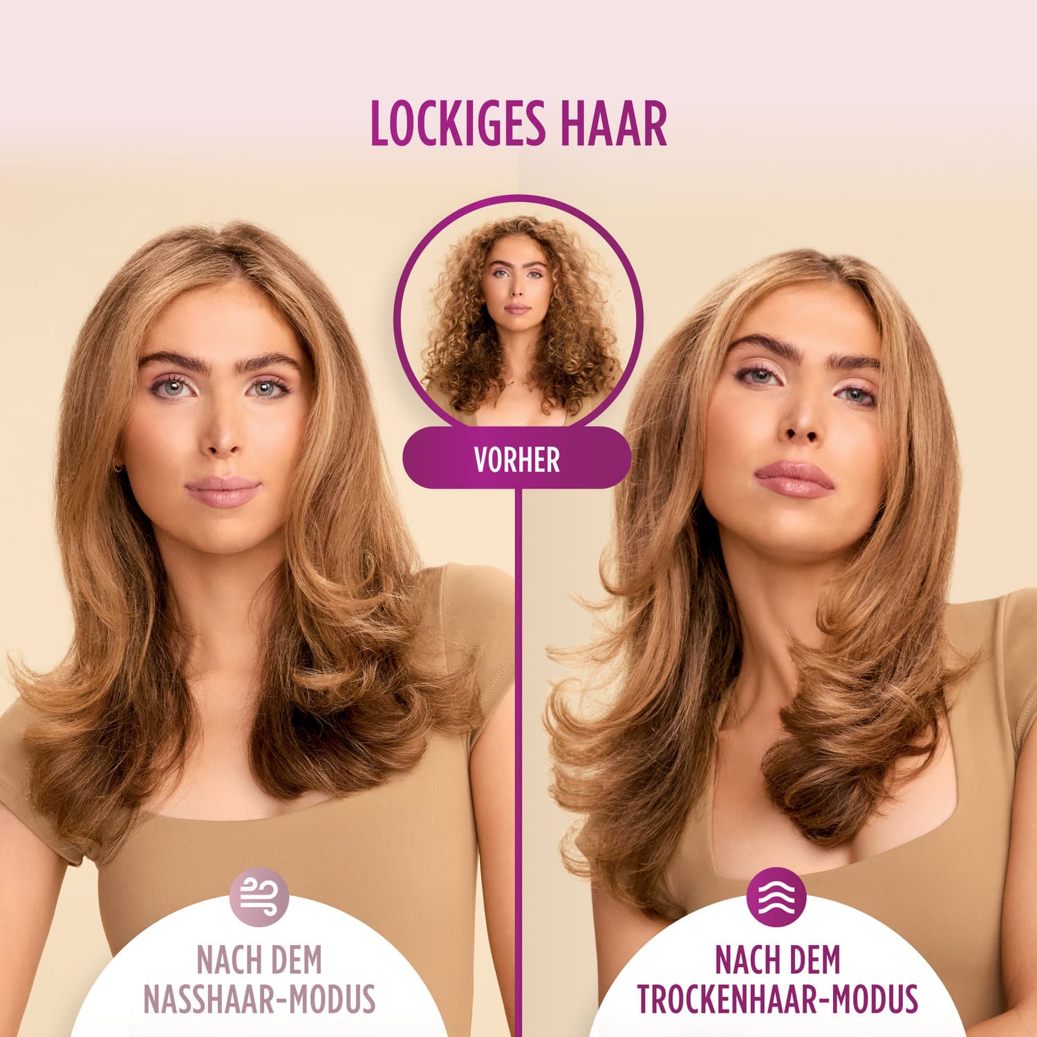 - Trockenhaar-Modus: Stylen und auffrischen in wenigen Minuten, mit weniger Frizz*