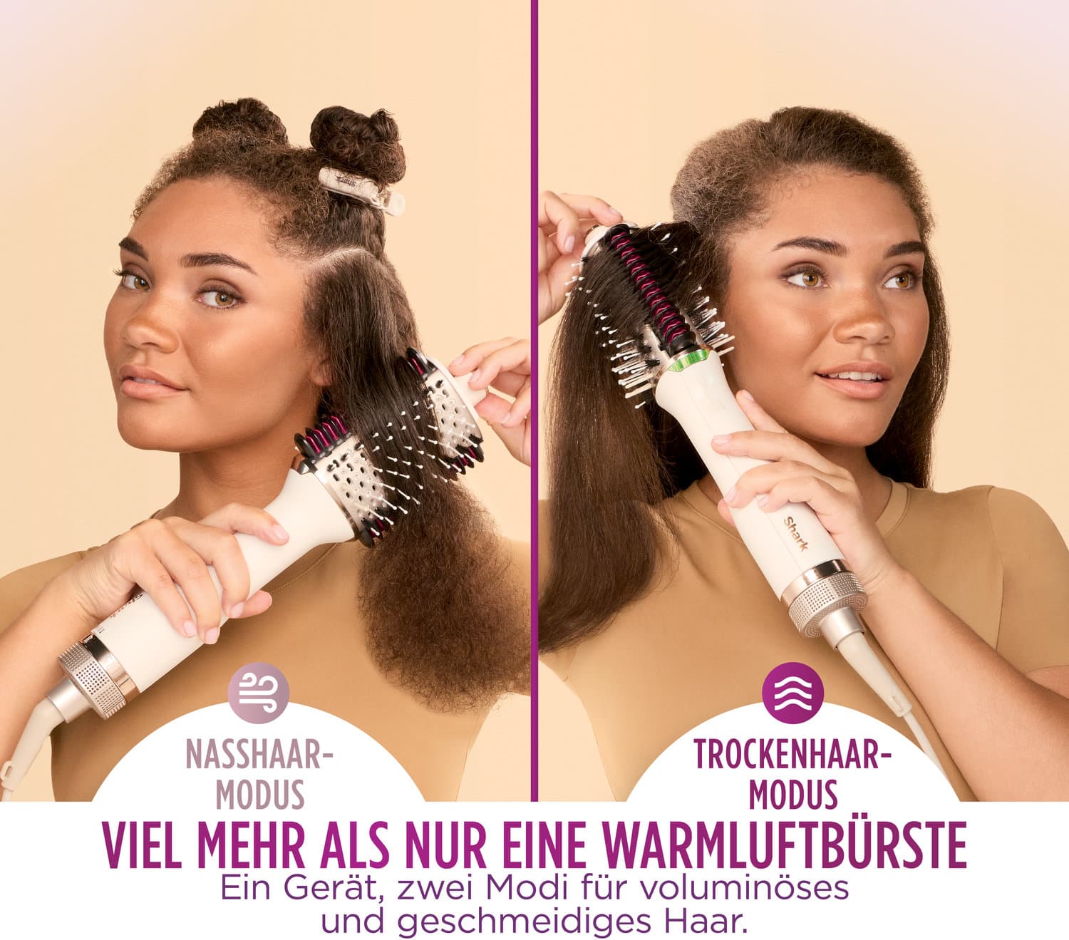 - Nasshaar-Modus: Trocknen, Volumen verleihen und stylen, ohne Hitzeschäden