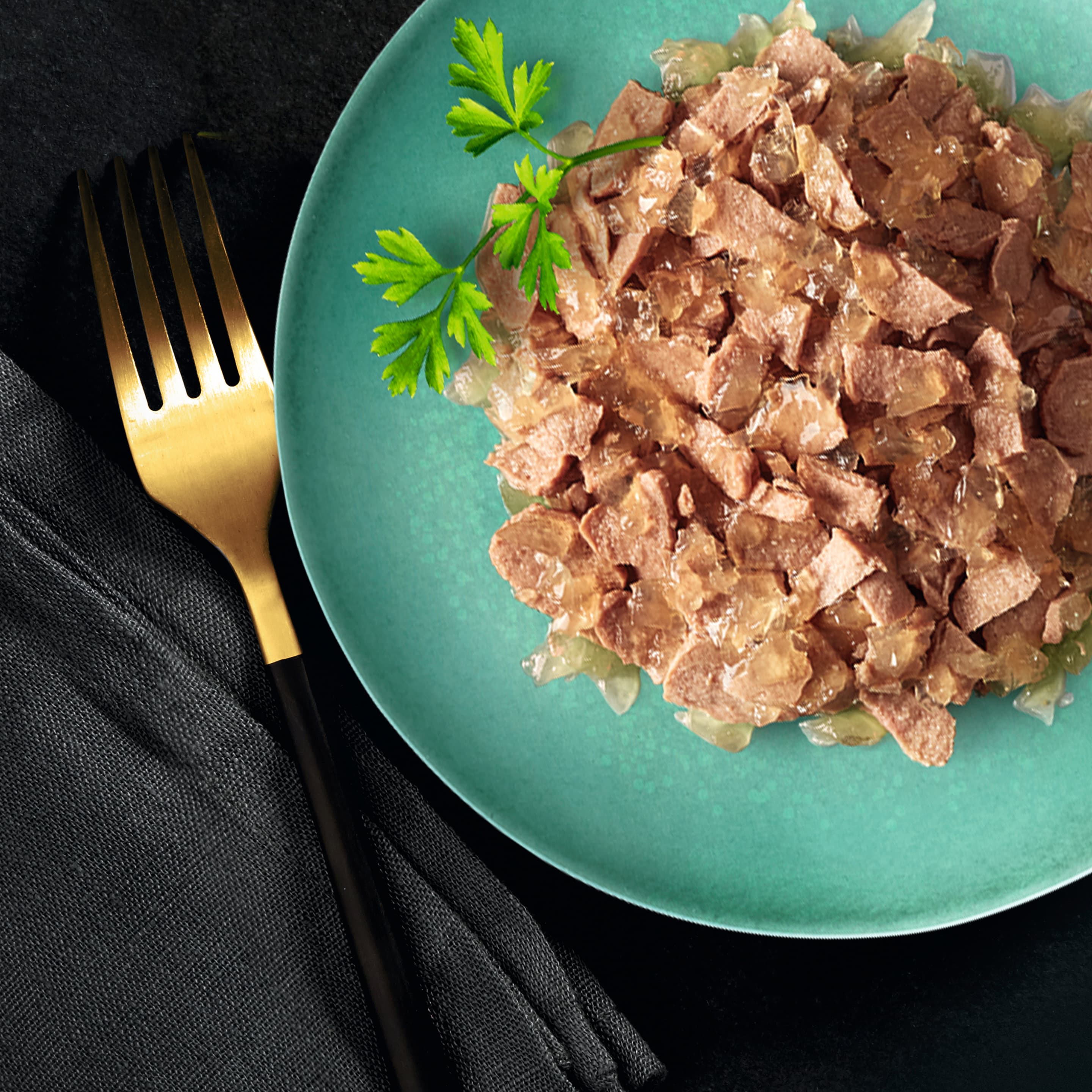 - Katzennassfutter in zart schmelzendem Gelee, hergestellt mit natürlichen und hochwertigen Zutaten, die von unseren zuverlässigen Lieferanten bezogen werden.