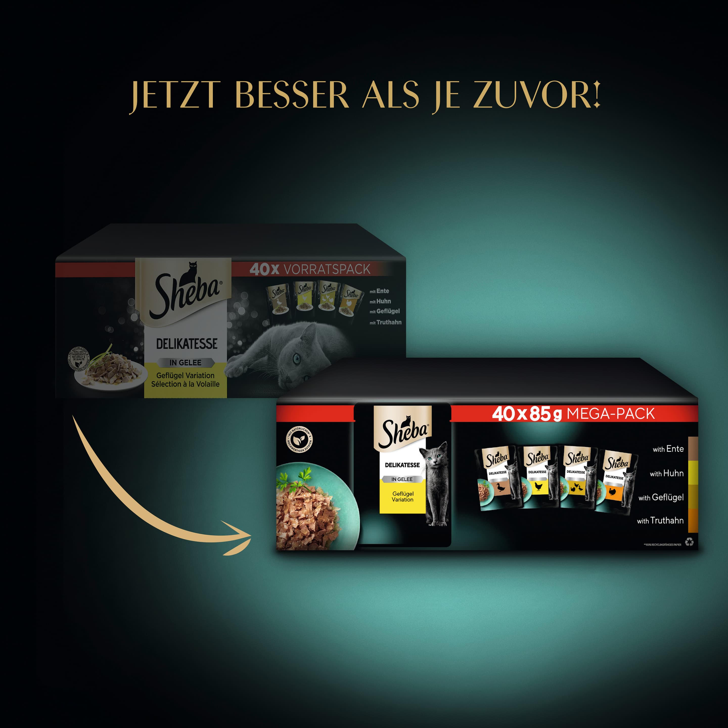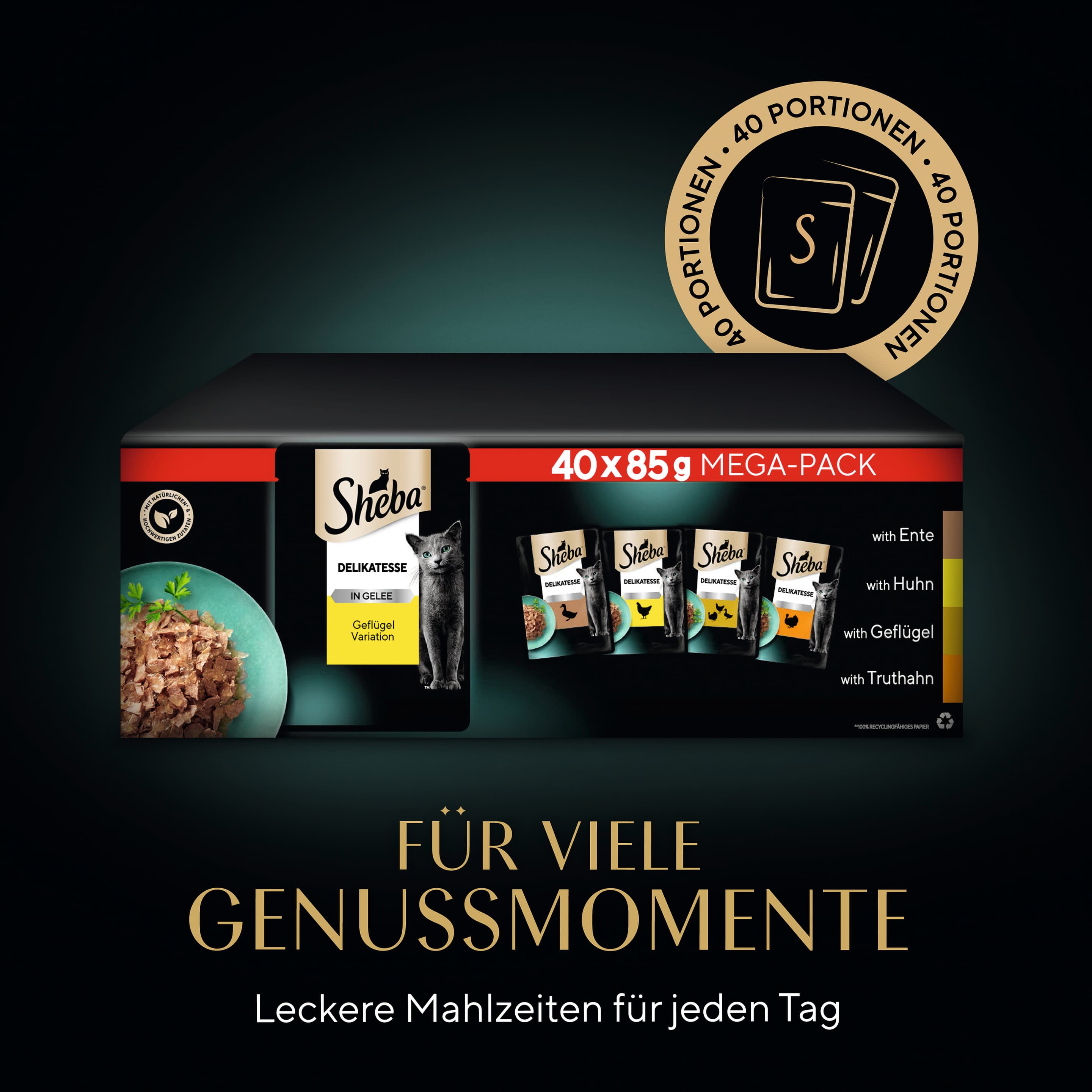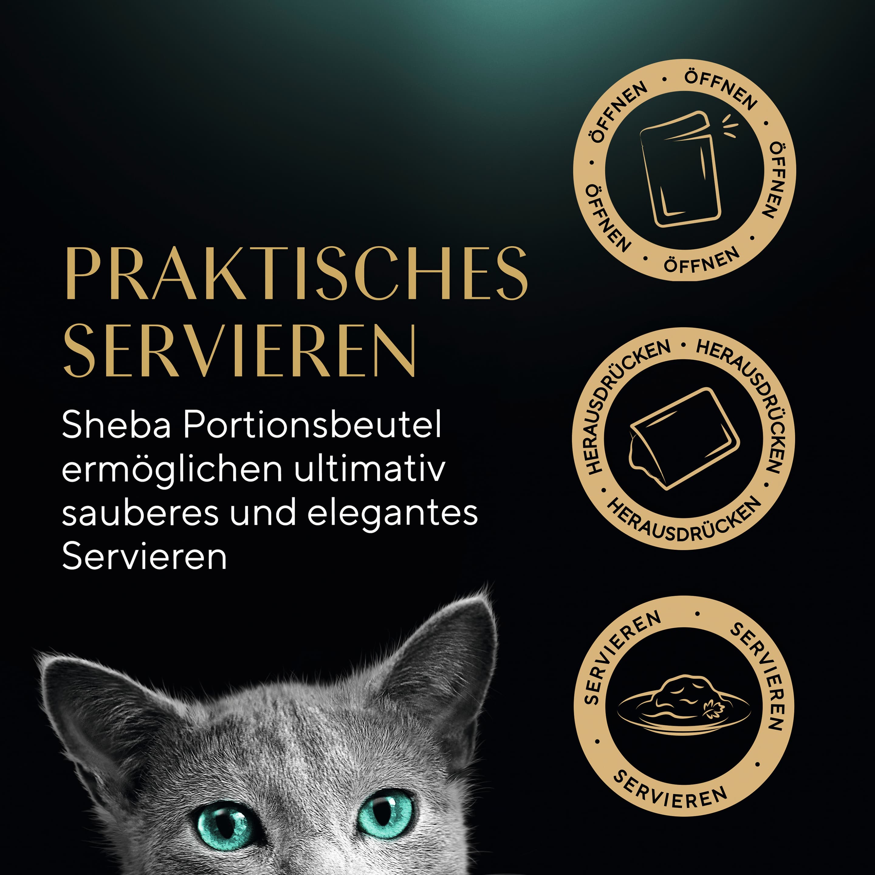 - Das hochwertige SHEBA® Katzennassfutter für ausgewachsene Katzen bietet deiner Samtpfote täglich eine komplette und ausgewogene Ernährung.