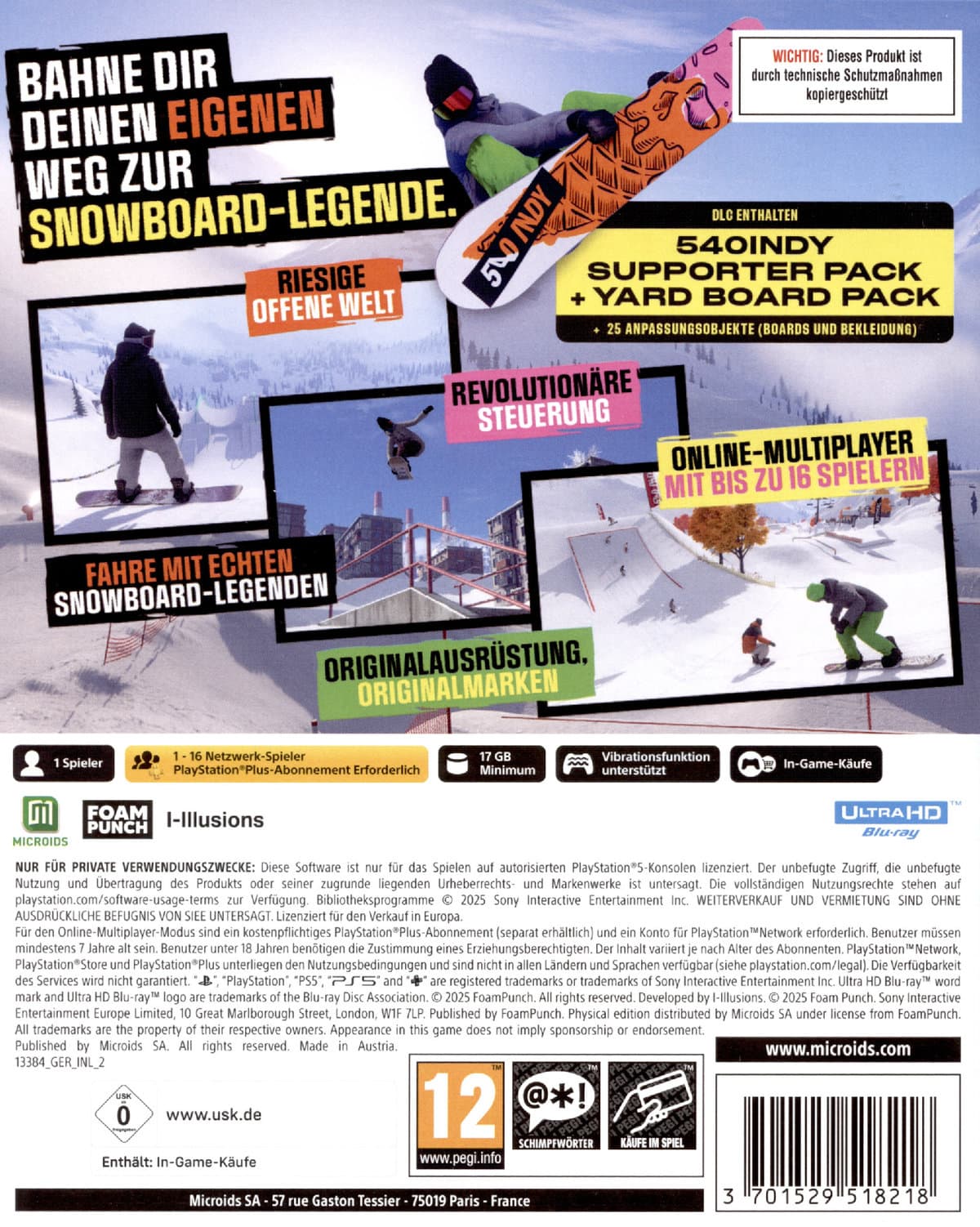 Die Full Ride Edition enthält das "540INDY Supporter Pack" sowie das "Yard Board Pack"