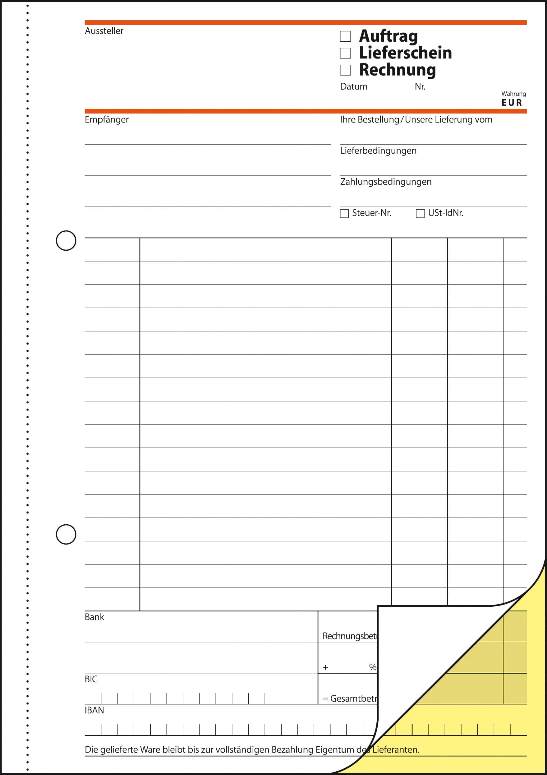 Kombinationsbuch, Auftrag/Lieferschein/Rechnung - 1. und 2. Blatt bedruckt, selbstdurchschreibend, A5, 2x40 Blatt.