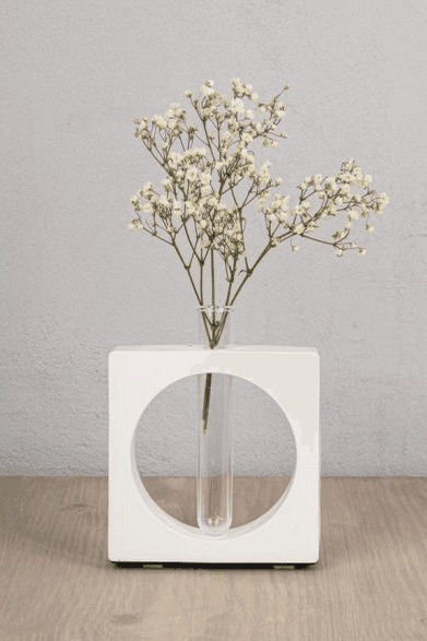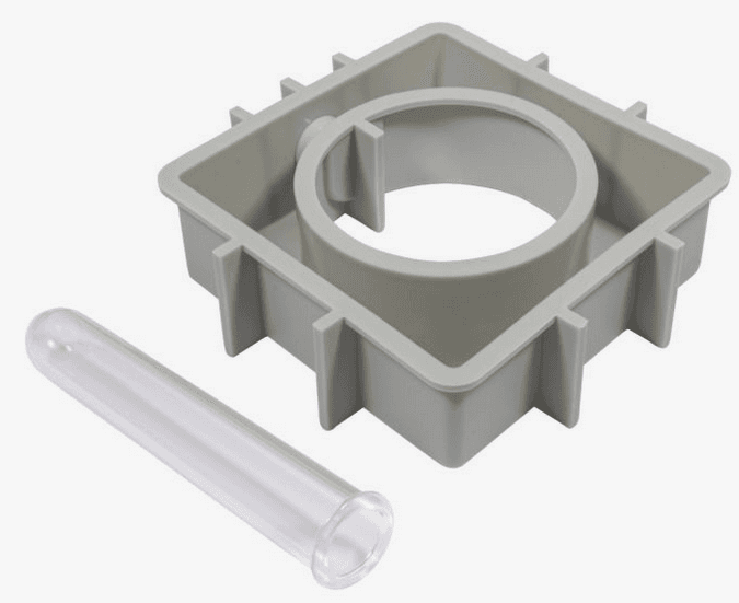 Silikon-Gießform, Vase/Kerzenhalter „Quadrat mit Kreis“11 x 11 cm, Tiefe 3,7 cm, ein Reagenzglas aus Acryl (20 mm ø) ist bei der Form enthalten.