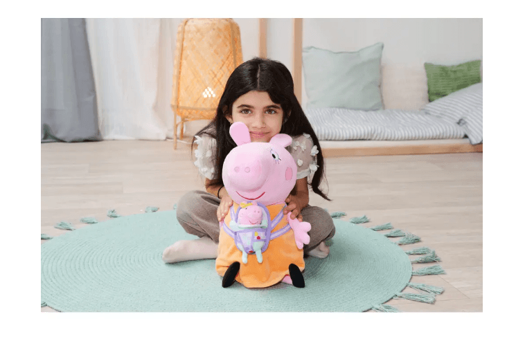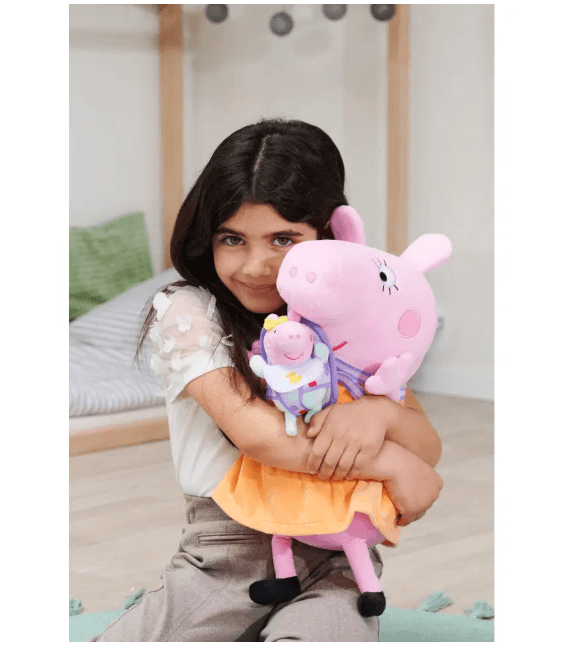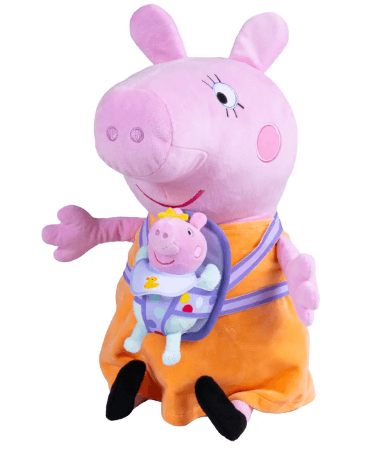 Mit der Mama Wutz Plüschfigur aus der beliebten Peppa Pig Serie kommt ein Stück Familienliebe ins Kinderzimmer! Die ca. 33 cm große Figur ist liebevoll gestaltet und trägt ein süßes Baby in der Tragetasche – ideal zum Kuscheln, Spielen und Sammeln.
