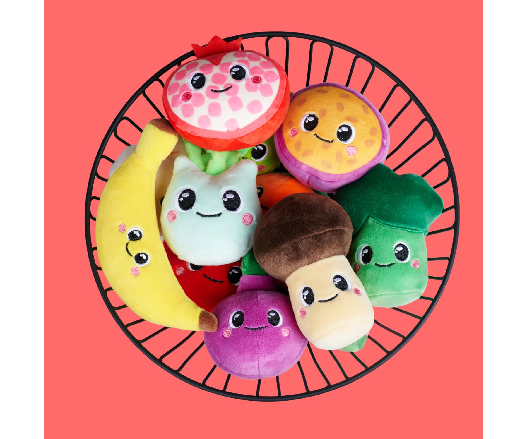 • 12 verschiedene Charaktere – Die bunte Kollektion umfasst insgesamt 12 verschiedene Obst- und Gemüsefreunde. Dank ihrer handlichen Größe passen die kleinen Plüschfiguren perfekt in Taschen und Rucksäcke – so sind die kuscheligen Begleiter immer mit dabei!