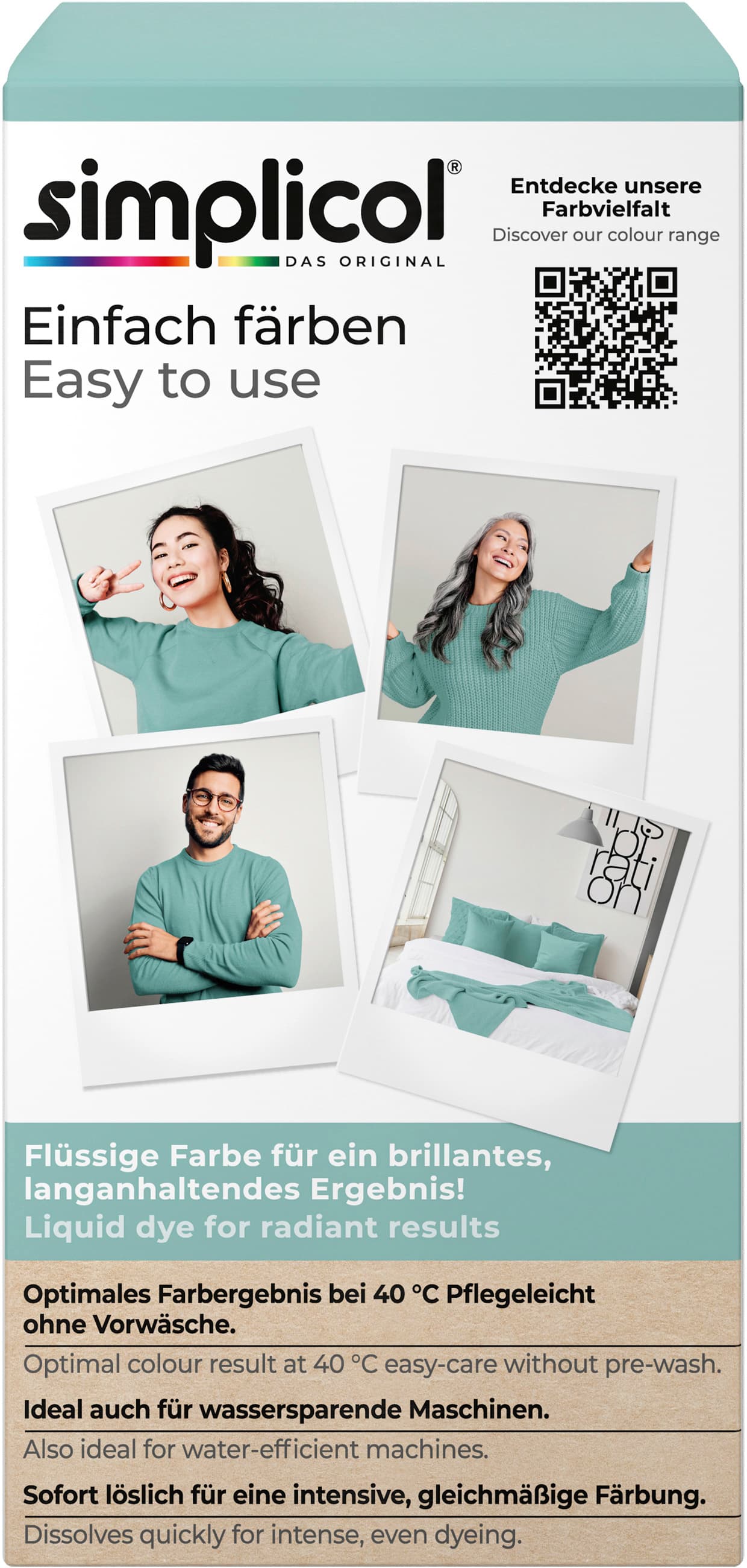 | Anwendungshinweis | Vorbereitung: Eine Packung färbt dauerhaft ca. 600 g Stoff im vollen Ton (z. B. 1 Jeans, 3 Handtücher, 4 T-Shirts oder 1 Badetuch). Trockenen Stoff ggf. auf einer Küchenwaage wiegen. Bei mehr Wäsche fällt die Färbung heller aus. Der Stoff muss sauber und fleckenfrei sein. Bitte waschen Sie vor dem Färben Weichspüler, Appreturen und Mittel zur Wäschedesinfektion heraus. Hinweise: Bitte max. 2 Packungen simplicol Textilfarbe intensiv pro Färbevorgang verwenden. Maximal 1200g Wäsche auf einmal färben. Muster bleiben nach dem Färben häufig sichtbar. Polyester-Nähte, Reißverschlüsse nehmen die Farbe nicht an. Manchmal werden Flecken, verblichene Stellen oder Bleichmittelspuren beim Färben nicht vollständig verdeckt. Nicht färben können Sie reine Synthetics wie Polyester, Polyamid Acryl sowie Wolle, Seide und Textilien mit Spezialausrüstung. Im unwahrscheinlichen Fall von Farbresten an Maschine und Kunststoffteilen, können Sie diese mit 5-10%iger handelsüblicher Chlorbleiche abwischen. Anwe |