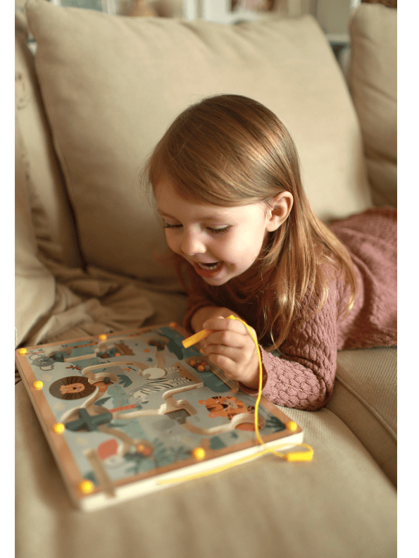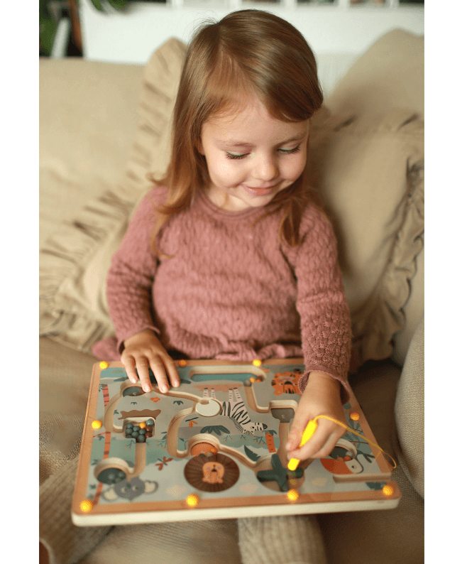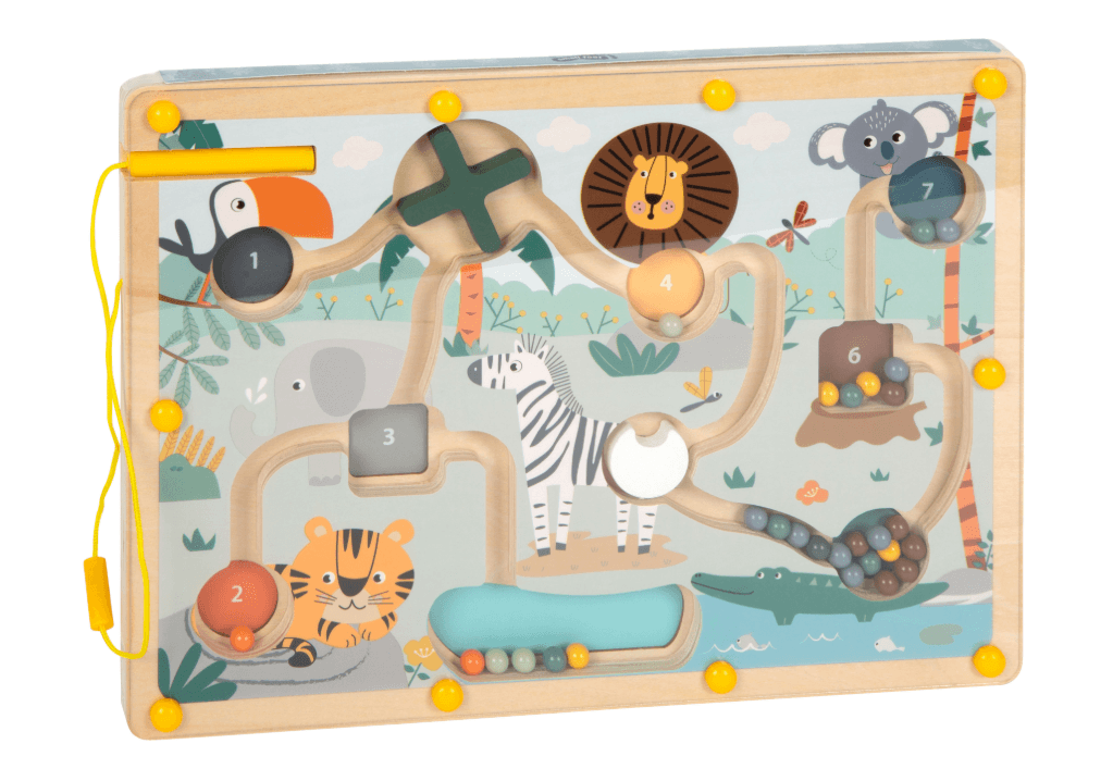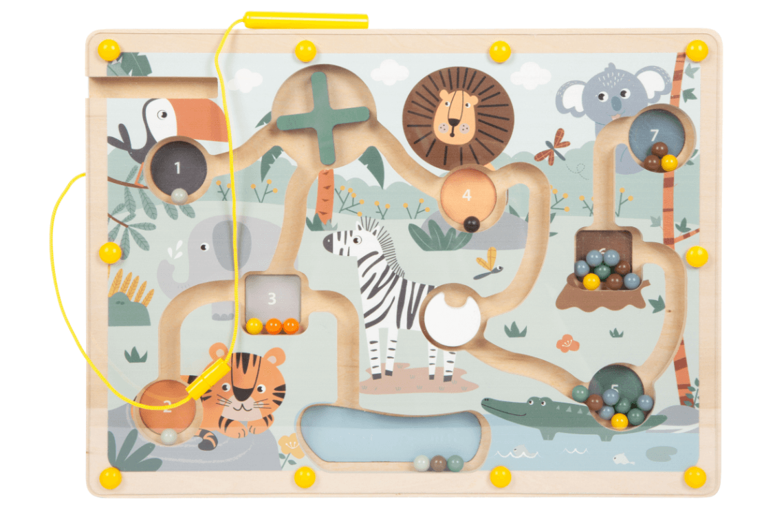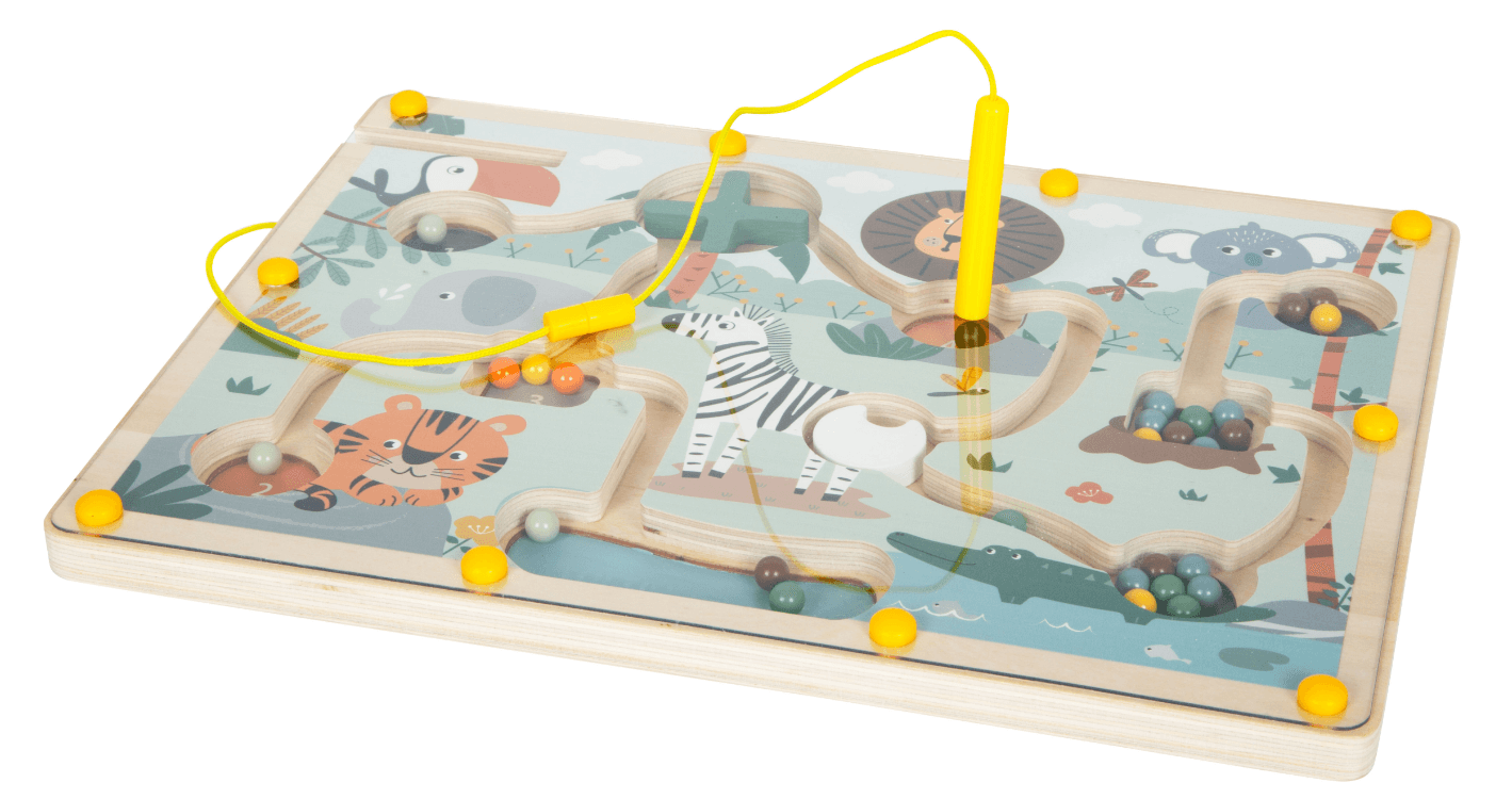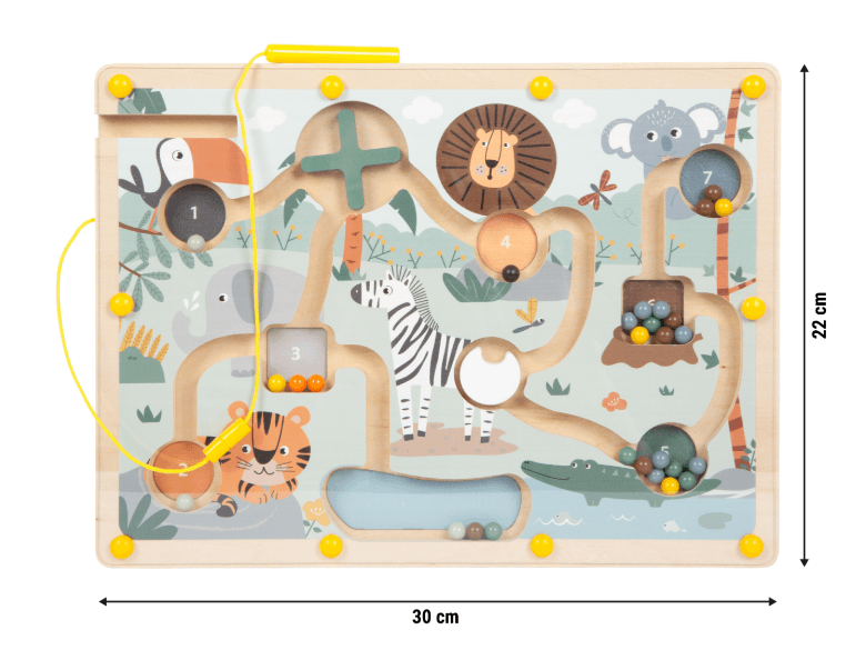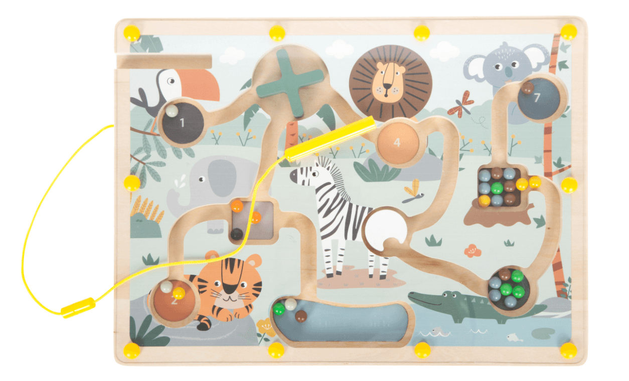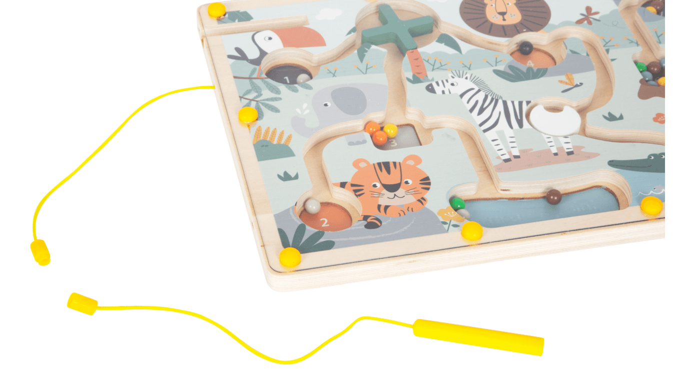 Die Mischung aus Farb- und Zahlenlernen sowie Gedulds- und Geschicklichkeitsspiel macht das Schiebelabyrinth zu einem sinnvollen Motorikspiel für langanhaltende Beschäftigung. Ideal auch für unterwegs geeignet, denn der Magnetstift kann dank des Befestigungsbandes nicht verloren gehen.
