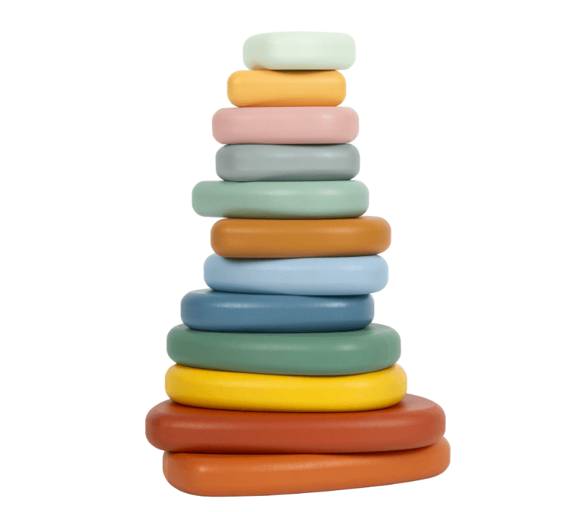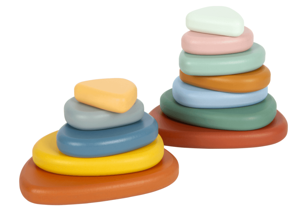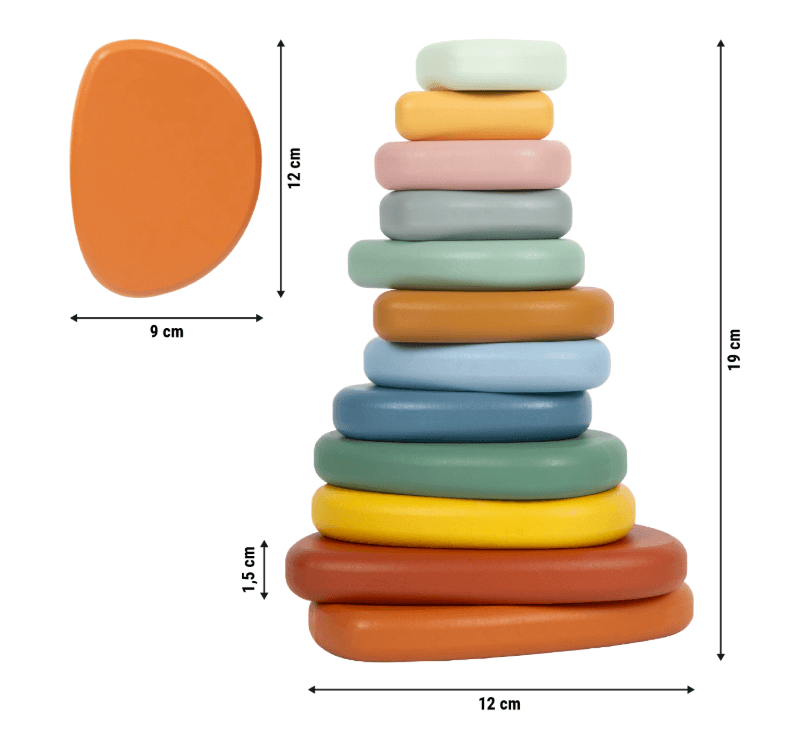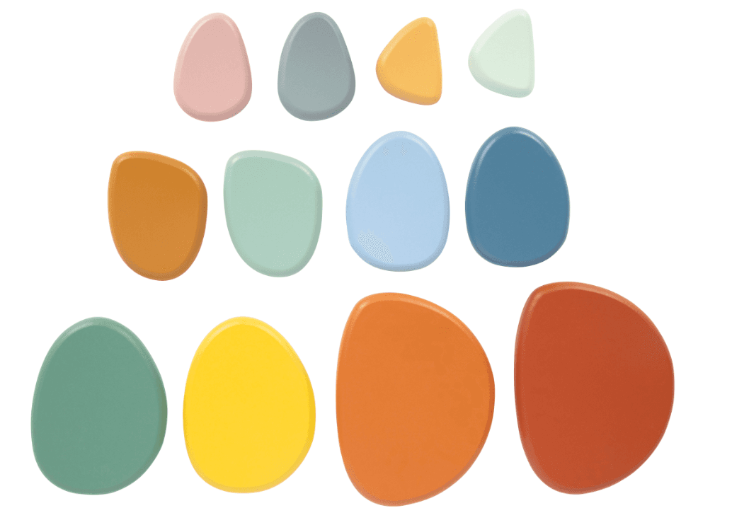 Die zwölf Flusssteine aus massivem Holz überzeugen durch ihre angenehme Haptik, unregelmäßigen Formen und abgerundeten Kanten. Dank ihrer natürlichen Farben und der hochwertigen Verarbeitung passen sie harmonisch in jedes Kinderzimmer und sind auch als Dekoelemente ein schöner Hingucker.