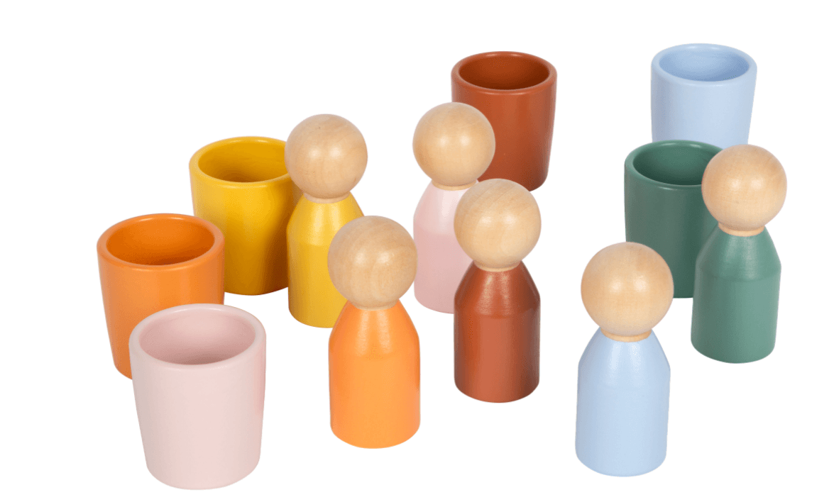 Beim Sortieren der Figuren zu den passenden Bechern werden nicht nur Feinmotorik und Greiffähigkeit gefördert, sondern auch das Erkennen und Benennen von Farben trainiert. Die Montessori Sortierbecher mit Figuren sind ein pädagogisch wertvolles Holzspielzeug, das kreative Spielmöglichkeiten mit gezielter Lernförderung verbindet – ideal für Zuhause, Kita oder den Einsatz in pädagogischen Einrichtungen.