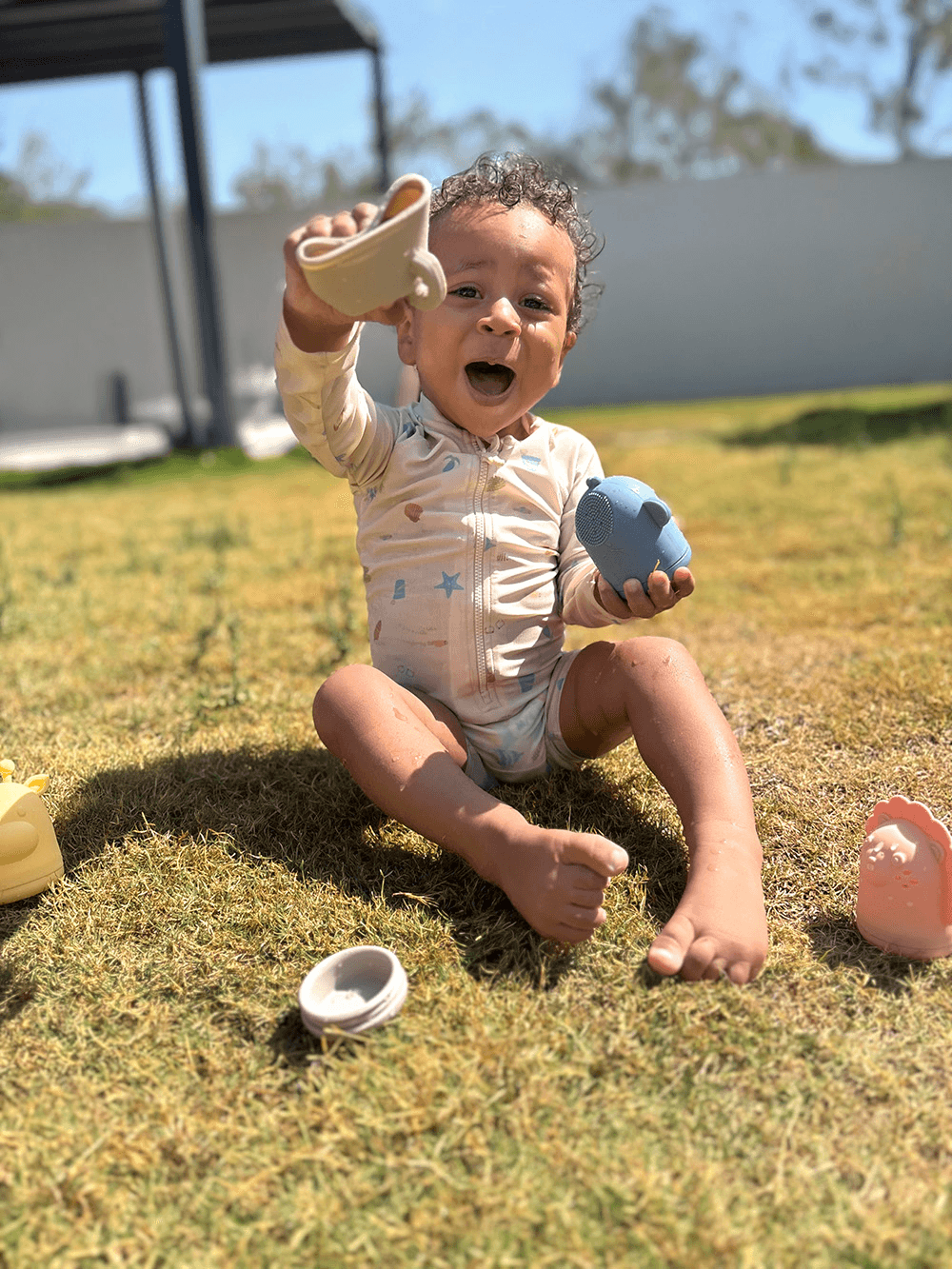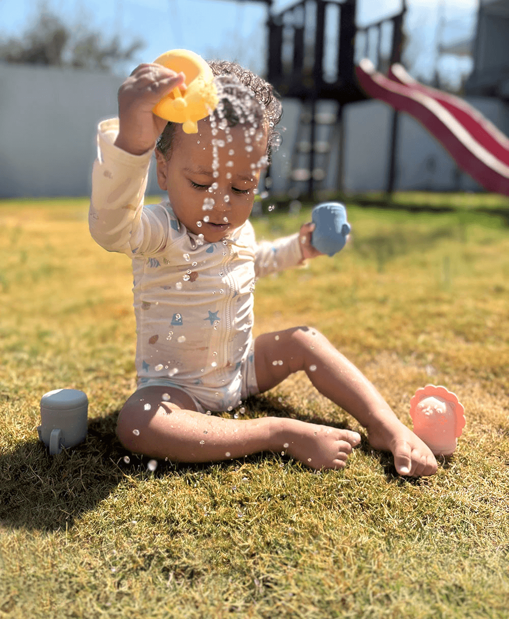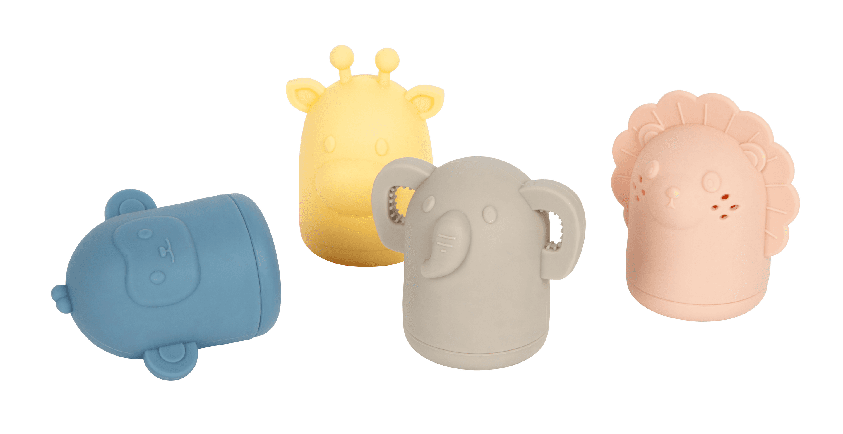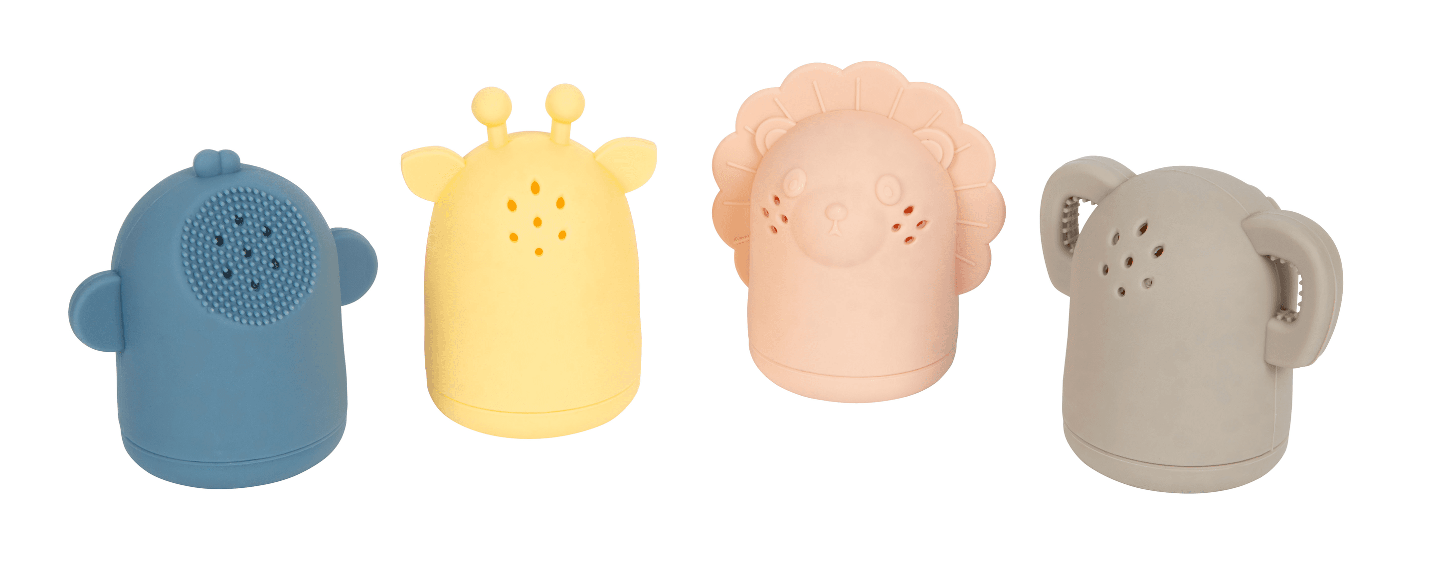 Das Silikon Badespielzeug-Set vereint Spielspaß und Sicherheit in einem durchdachten Design, das speziell für die Kleinsten entwickelt wurde. Die vier Spritzfiguren bringen mit ihren verschiedenen Texturen und Öffnungen Abwechslung ins Badevergnügen: Sie spritzen Wasser auf unterschiedliche Weise und regen so die Sinne an, während Kinder spielerisch ihre Feinmotorik und Hand-Augen-Koordination schulen. Das durchdachte zweiteilige Design ermöglicht es, die Figuren zum Reinigen einfach zu öffnen. So wird das Innere vollständig trocken und bleibt frei von Schimmel oder unangenehmen Gerüchen – ein wichtiger Pluspunkt. Ob in der Badewanne, am Strand oder am Wasserspieltisch: Die robusten Tiere sorgen überall für fröhliches Planschen und aktives Spiel. Die sanften Farben und die verschiedenen haptischen Details bieten zusätzlich sinnliche Reize und laden zum Fühlen, Greifen und Entdecken ein.
