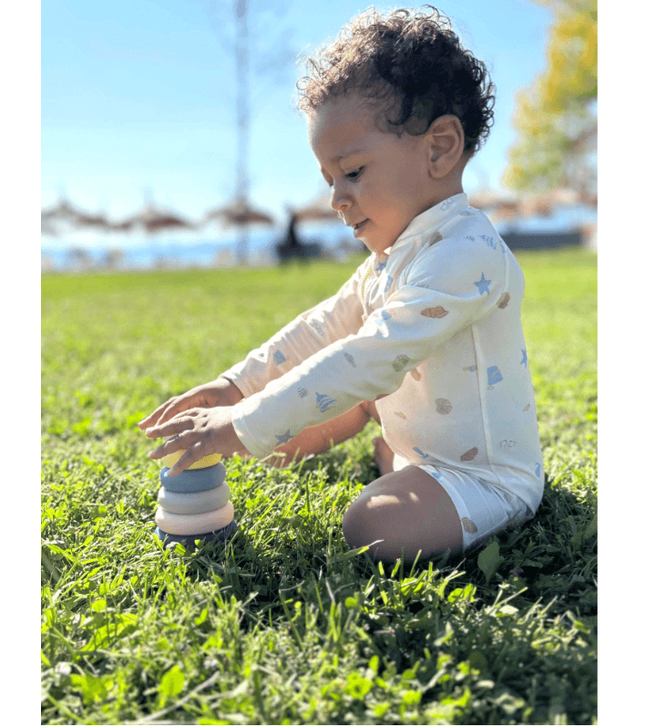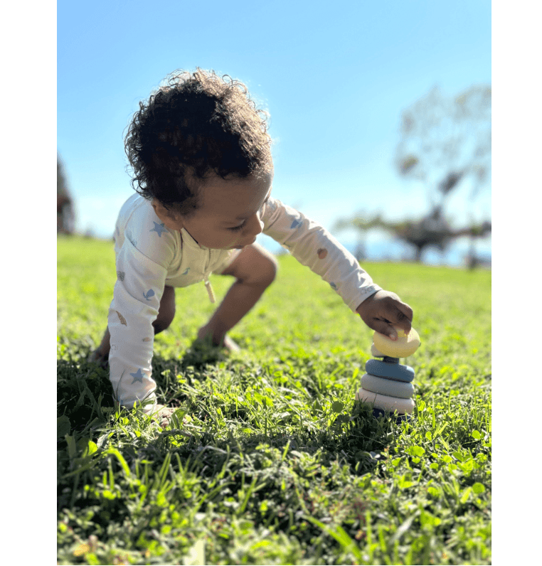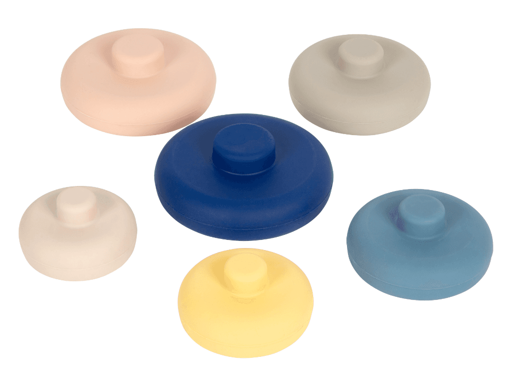 Der Silikon Stapelturm ist ein vielseitiges Motorikspielzeug, das Babys und Kleinkinder bei wichtigen Entwicklungsschritten begleitet. Die 6 unterschiedlich großen Turmelemente lassen sich ohne Mittelstab sicher aufeinandersetzen – ein Plus an Sicherheit und ein idealer Einstieg in die Welt des Stapelns. Gleichzeitig werden Kreativität und Fantasie angeregt, wenn die Elemente frei kombiniert und neu gestapelt werden. Ob als Turm im Kinderzimmer, als Spielzeug im Sandkasten oder als Badespaß in der Wanne: Der Silikonstapelturm ist robust, flexibel und vielseitig einsetzbar – perfekt für den Alltag mit kleinen Entdeckern.