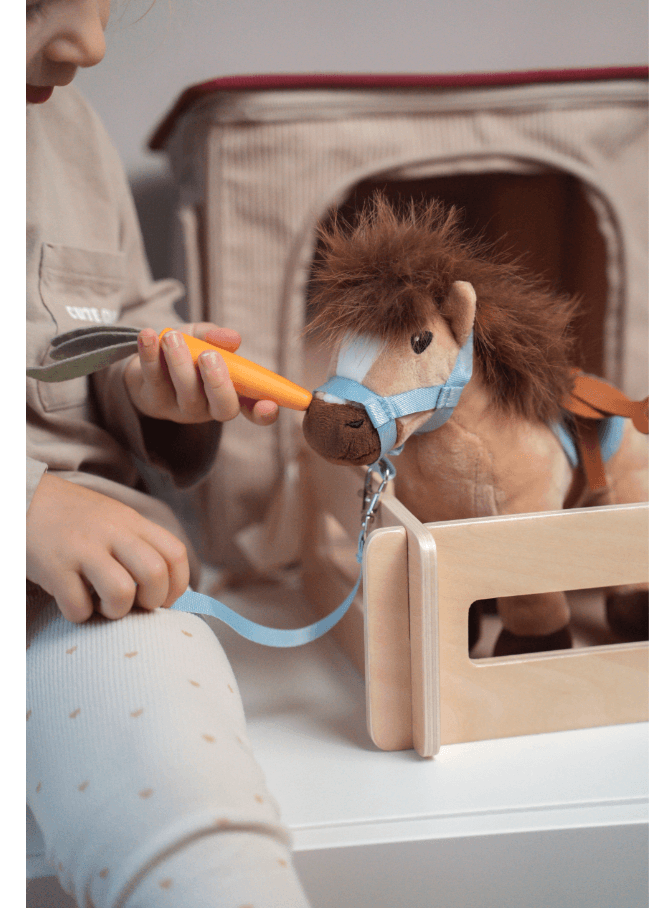 Ein Traum für kleine Pferdeliebhaber:innen: Das detailreiche Pferdespielset kombiniert kreatives Rollenspiel mit einem hohen Spielwert – und das „ready to play“ sofort zum Losspielen ein – perfekt auch als Reisespielzeug oder Beschäftigung für unterwegs.