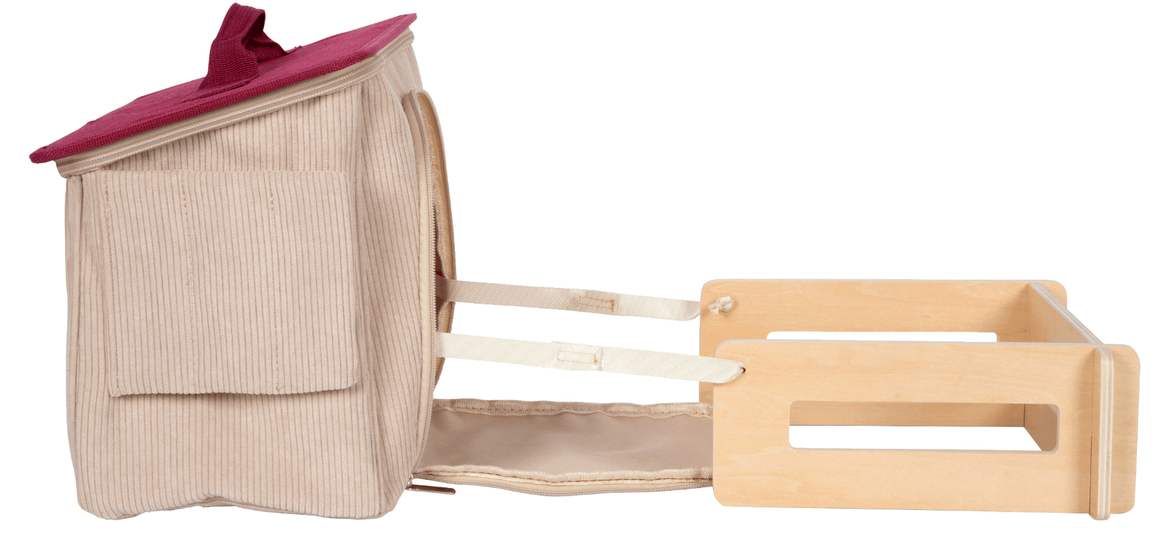 stabile Tasche aus Cord dient als Stall und Aufbewahrung zugleich – ideal für unterwegs