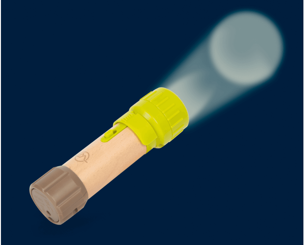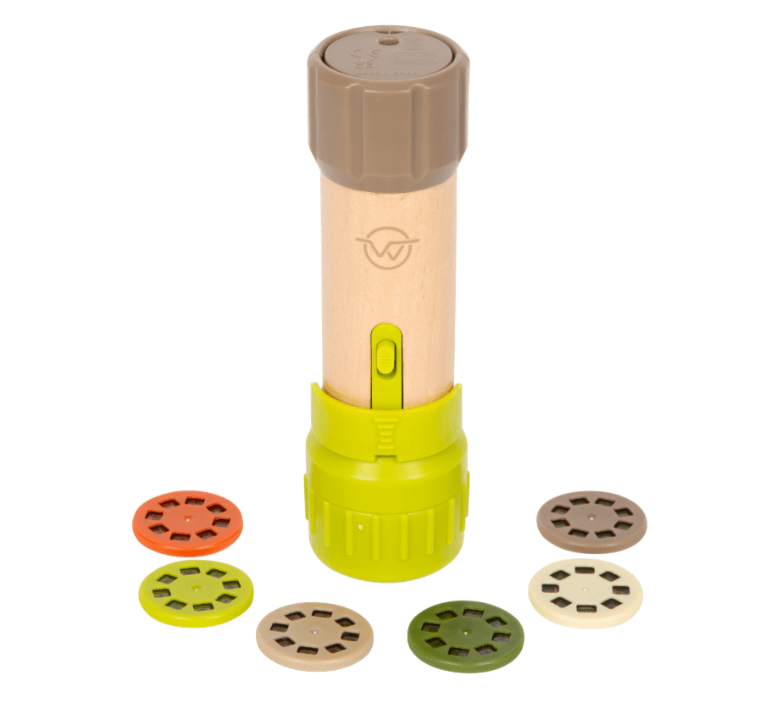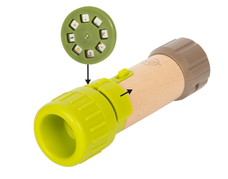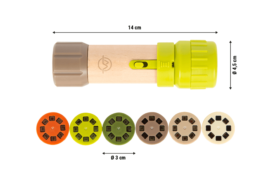 Mit der 2-in-1 Taschenlampe wird kindliche Neugier zum Erlebnis: Kinder lernen so spielerisch Zusammenhänge aus Biologie, Botanik und Astronomie kennen – visuell, eindrucksvoll und intuitiv. Durch das Einsetzen und Wechseln der Bildscheiben wird zusätzlich die Feinmotorik gefördert. Die einfache Handhabung sowie die hochwertige Verarbeitung machen das Entdeckerspielzeug nicht nur zum idealen Begleiter bei Streifzügen durch die Natur in der Dunkelheit – es macht auch im Kinderzimmer, auf Reisen oder beim Einschlafen eine gute Figur – leuchtende Kinderaugen garantiert!
