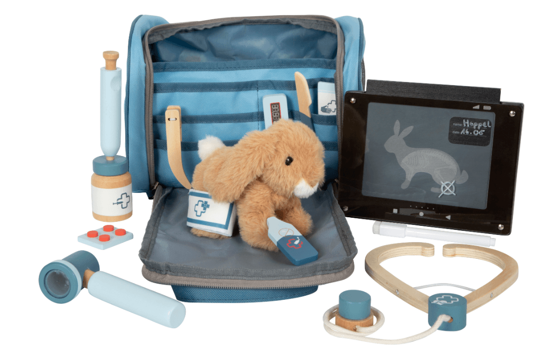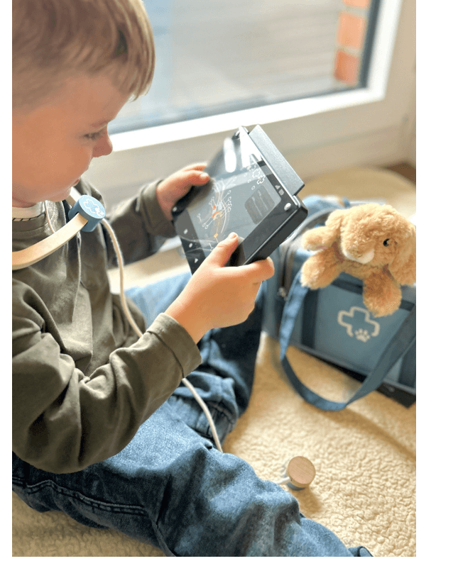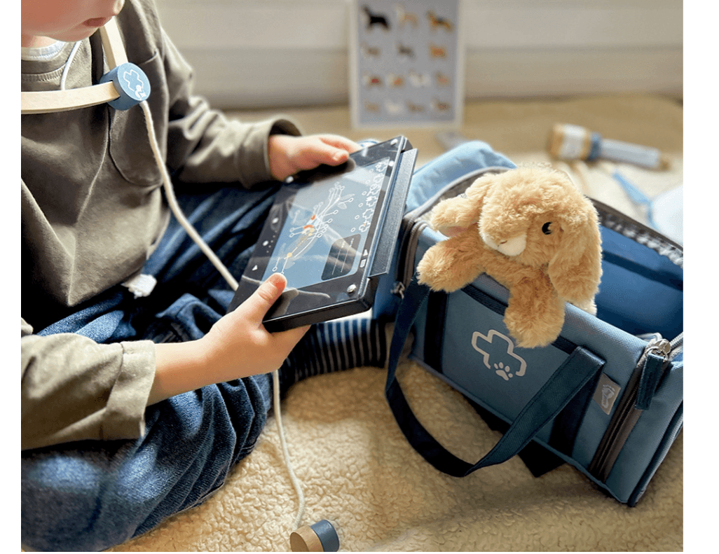 Mit dem beiliegenden Stift können Check-up- und Patientenkarten individuell beschriftet werden – das fördert ganz nebenbei die Sprachentwicklung und das Verständnis für Tiergesundheit. Die realistische Ausstattung lädt zu kreativen Spielszenarien ein und stärkt spielerisch Empathie, Verantwortungsbewusstsein und feinmotorische Fähigkeiten.