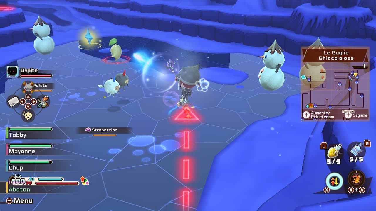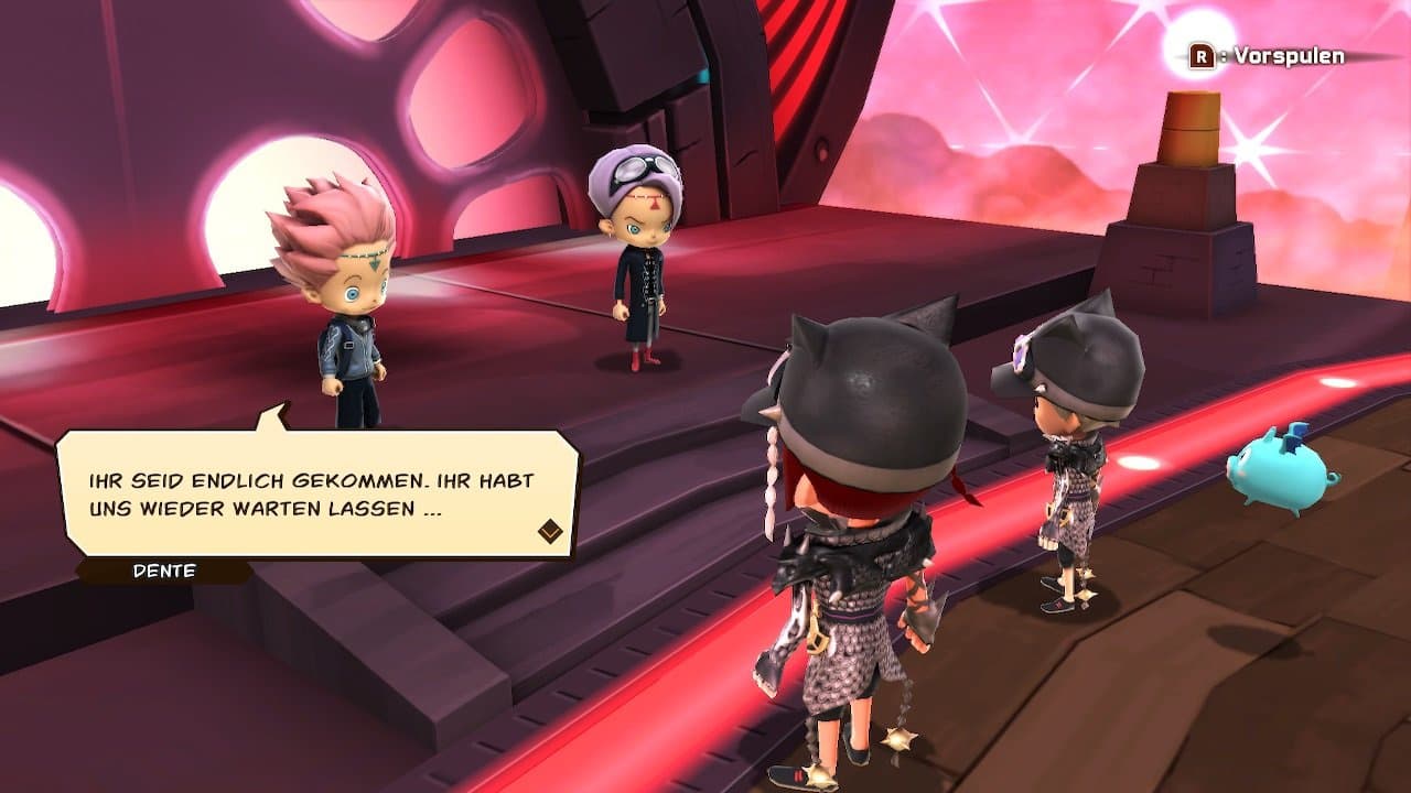 MÖGE DIE SCHATZJAGD BEGINNEN...Man nehme einen guten Schuss Fantasy, eine Prise High-Tech und schmecke das Ganze mit einer großen Portion Humor ab: Fertig ist Snack World: Die Schatzjagd - Gold. LEVEL-5 serviert diesen virtuellen Leckerbissen allen abenteuerhungrigen Rollenspiel-Fans auf Nintendo Switch.Dem friedlichen Land Tutti-Frutti droht großes Unheil, denn der bitterböse Sultan Balsamico versucht, den diabolischen Drachen Smörg Åsbord zu beschwören. SpielerInnen schließen sich mit ihrem selbsterstellten Charakter der Truppe aus heldenhaften Schatzjägern rund um Chup und Mayona an, um die Gefahr abzuwenden und König Büfetts Reich zu retten.Die prozedural generierten Dungeons locken mutige Abenteurer mit wertvollen Schätzen und hilfreichen Gegenständen, doch lauern dort auch heimtückische Fallen und mächtige Bossmonster. Wohl dem, der den letzten Besuch in der Stadt genutzt hat, um sich mit Verbrauchsgegenständen auszustatten und die eigene Ausrüstung zu optimieren. Im Gefecht beschwören SpielerInnen Snacks, verbündete Wesen, die ihnen im Gefecht unter die Arme greifen. Im Kampf dürfen sie außerdem schnell zwischen verschiedenen Waffen, Jaras genannt, wechseln und Items einsetzen, um für jeden Kontrahenten bestens gerüstet zu sein.Und wenn im Koop-Modus online (kostenpflichtige Nintendo Switch Online-Mitgliedschaft benötigt) oder lokal bis zu vier SpielerInnen gemeinsam losziehen, bekommen endgültig auch die fiesesten Monster weiche Knie.• Bis zu vier SpielerInnen stürzen sich im lokalen oder online Koop-Modus gemeinsam ins Abenteuer.• Prozedural generierte Dungeons stellen die SchatzjägerInnen vor immer neue Herausforderungen.• Software in Deutsch