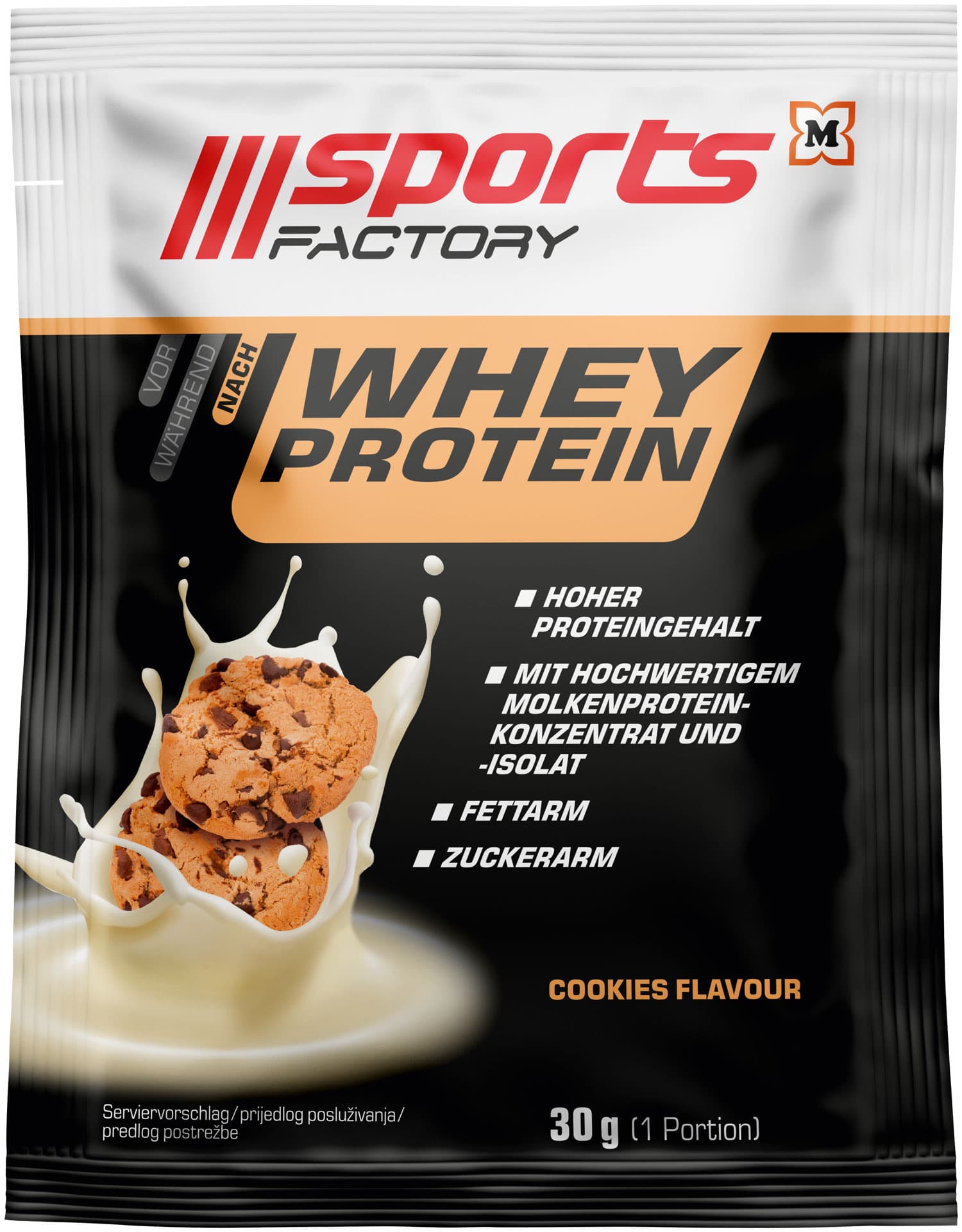 Portionsbeutel zum Anrühren eines cremigen Proteinshakes mit Keks-Geschmack