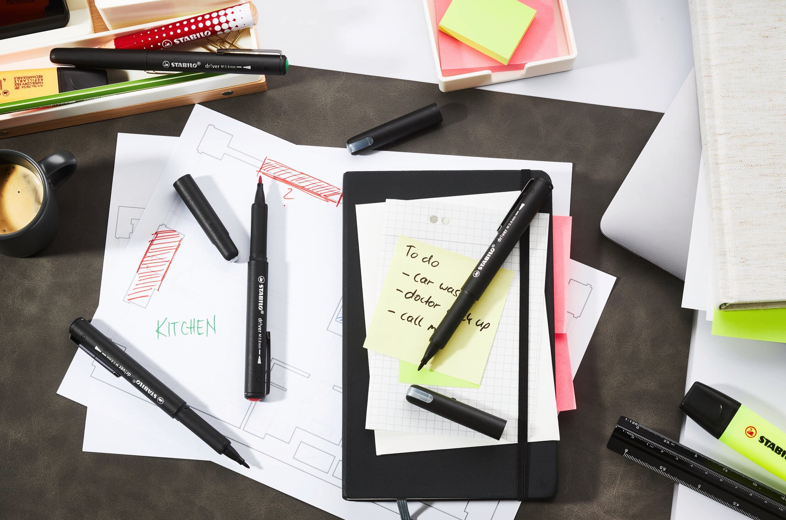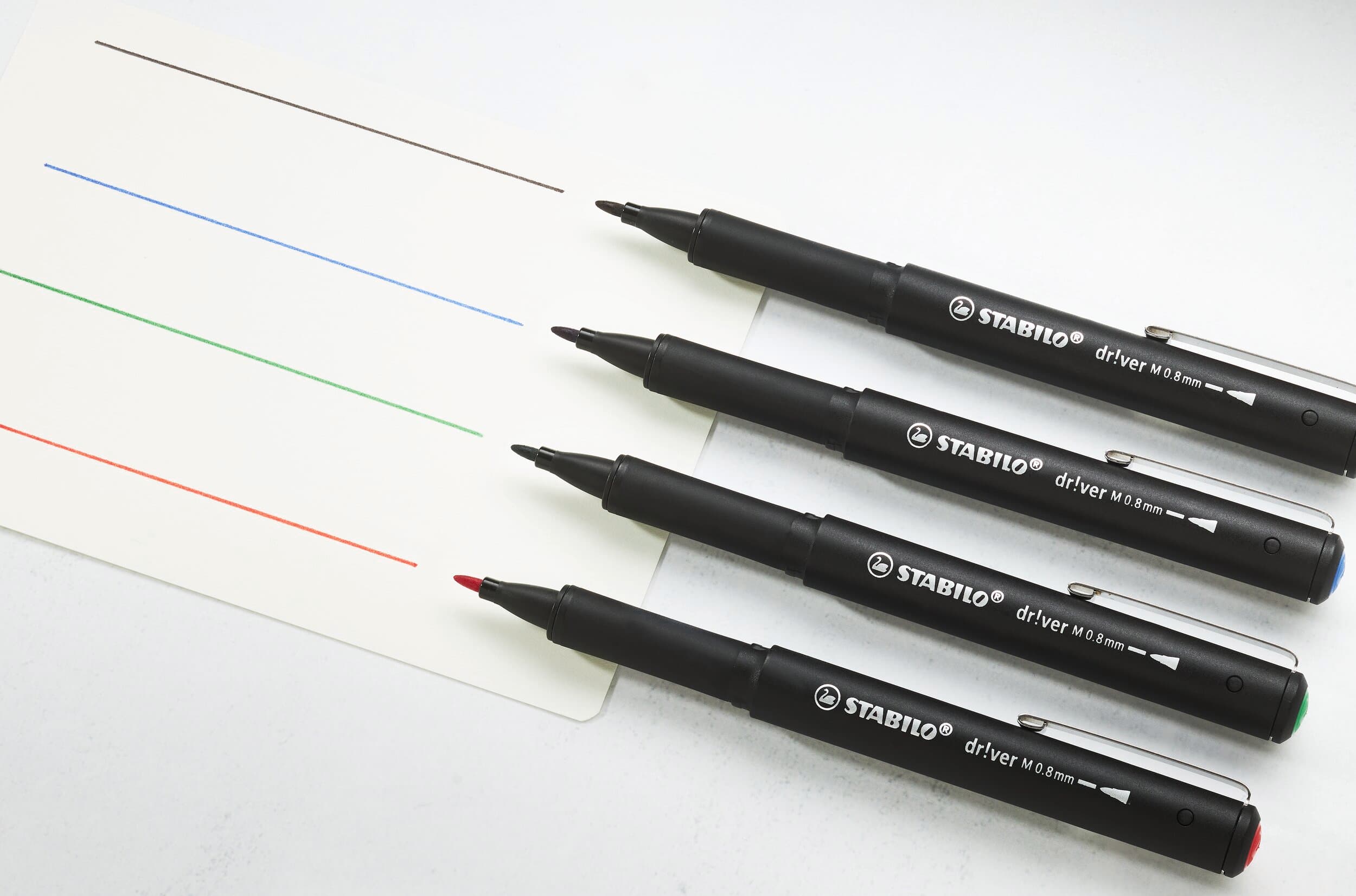 Der STABILO dr!ver Filzschreiber ist das perfekte Accessoire für alle Schreibanlässe. Ob im Büro, im Unterricht oder zu Hause – der Stift ist ein zeitloses, schlankes und sehr zuverlässiges Schreibgerät. Die dicke 0,8 mm Medium-Spitze sorgt für ein sanftes und müheloses Schreibgefühl. Der Stift im modernen schwarzen Design ist außerdem mit einem Metallclip ausgestattet, mit dem er an einer Tasche oder einem Notizbuch befestigt werden kann. Im Set mit den vier Farben rot, grün, blau und schwarz ist er für langes Schreiben oder Zeichnen eine hervorragende Wahl.