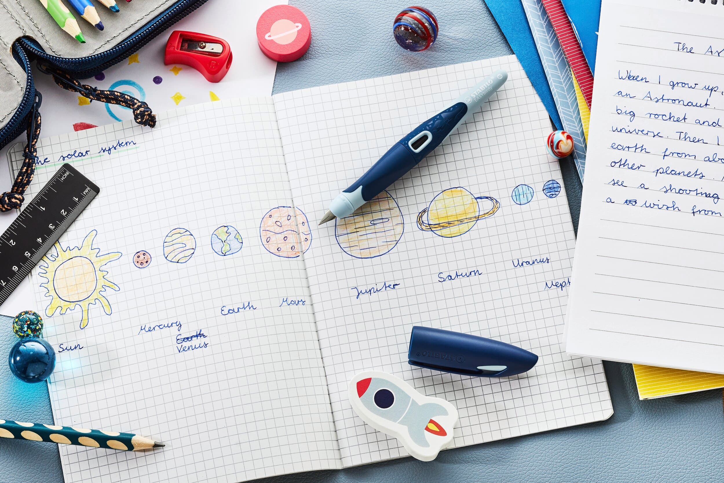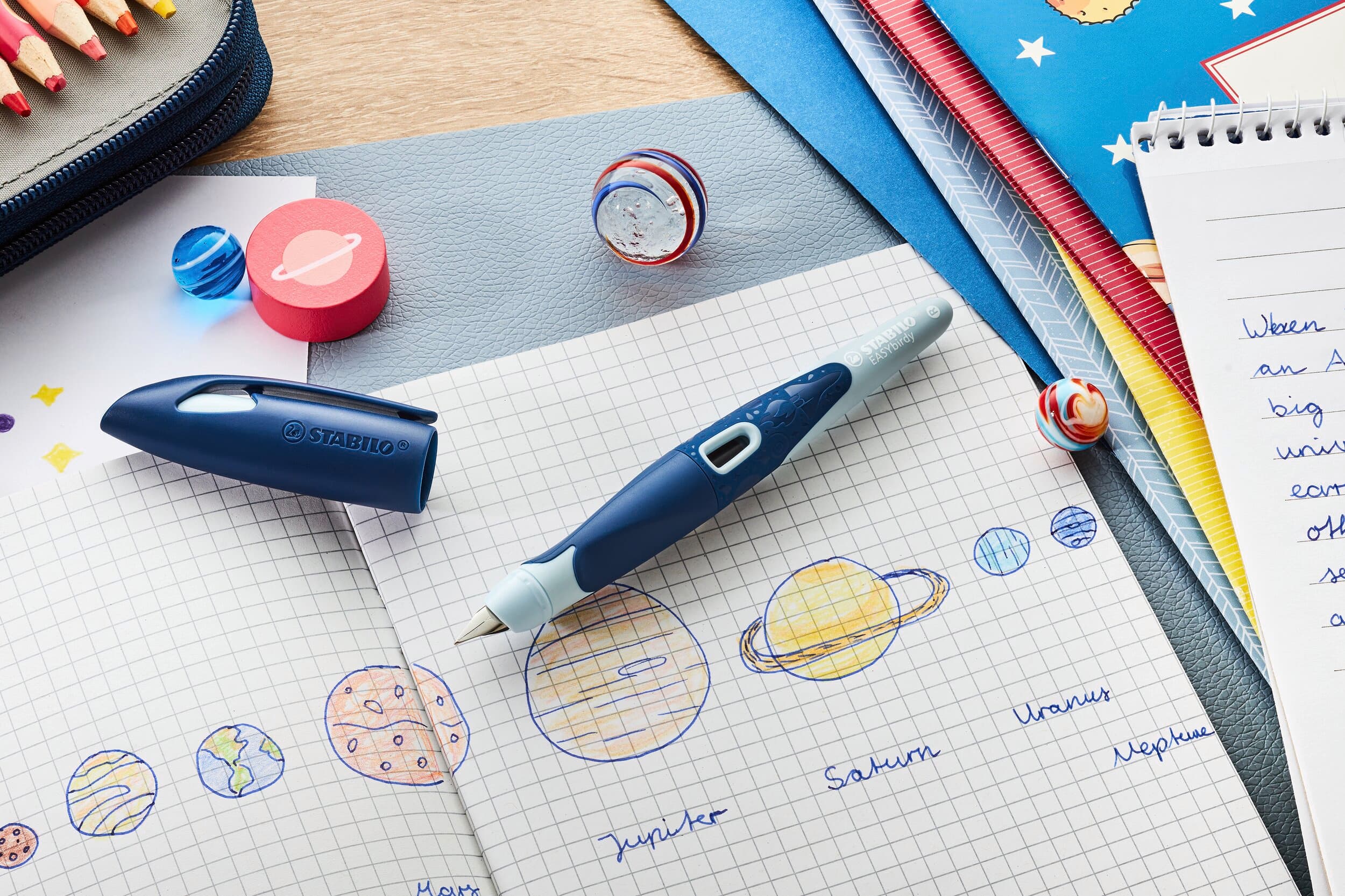 Die STABILO EASYbirdy 3D DreamWorld Special Edition erweitert das STABILO EASYbirdy Sortiment um zwei Farben und Designs! Auf der Softtouch-Oberfläche des Stiftes sind Motive zu den Themen Feenwelt und Weltall eingraviert, die beim Darüberstreichen spürbar sind.