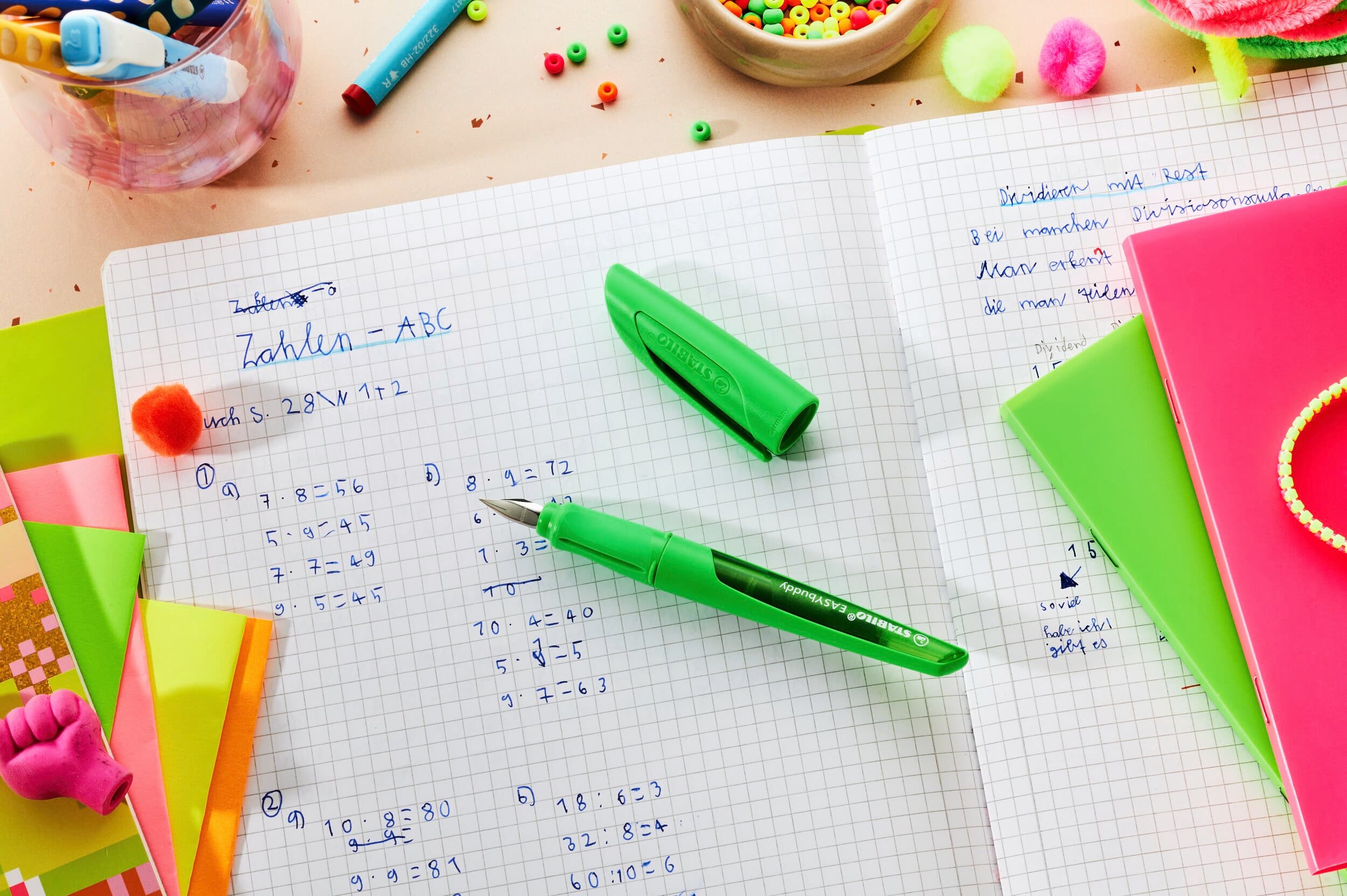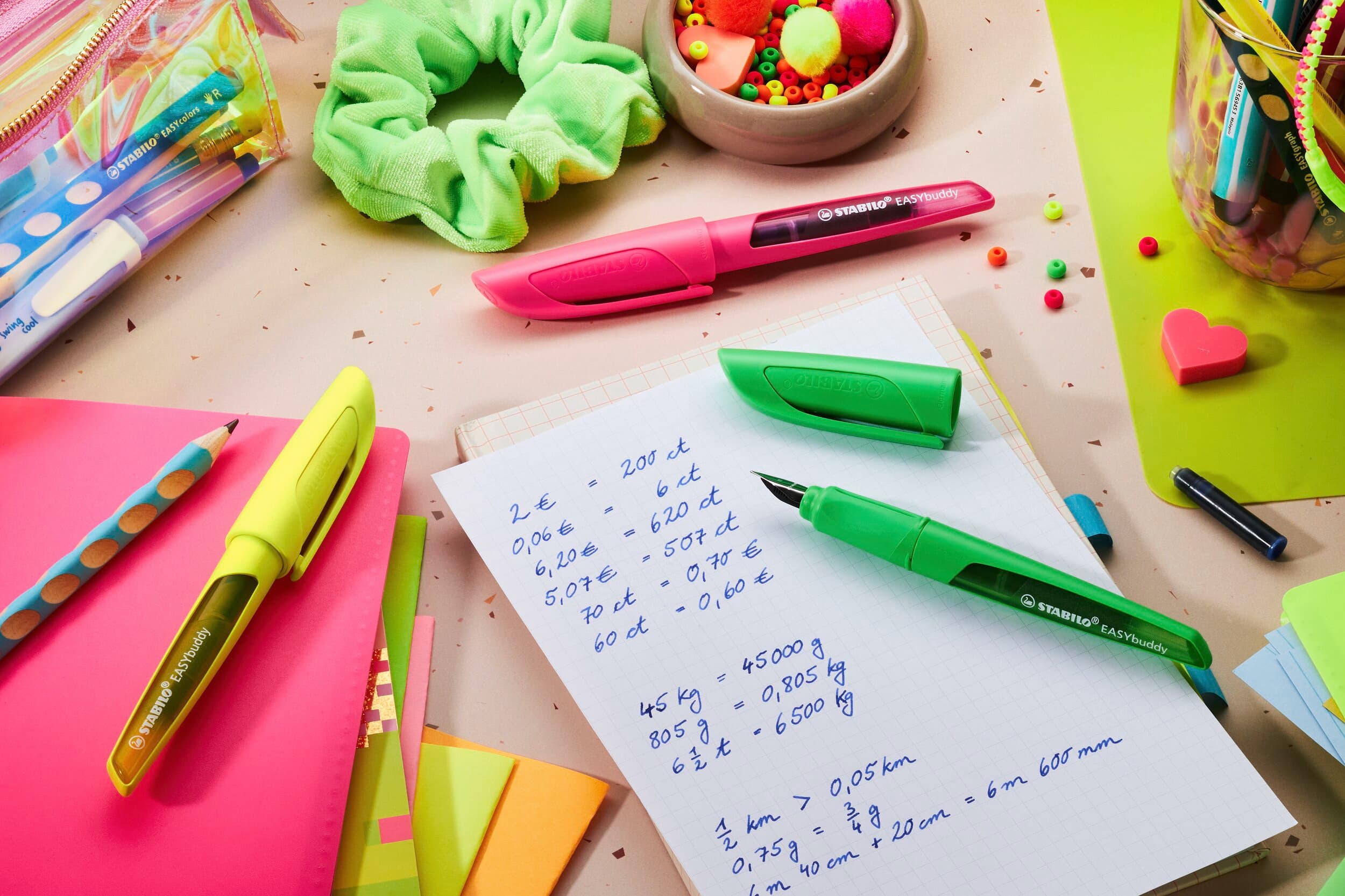 Der STABILO EASYbuddy ist der optimale Begleiter für kleine Helden und Heldinnen in der Grundschule. In ihm steckt das ganze Expertenwissen der STABILO Ergonomie-Profis, sodass den Kindern das Schreiben einfacher fällt und sie dabei jede Menge Spaß haben. Die universelle, rutschfeste Soft-Griffzone des ergonomischen Schulfüllers sorgt für sicheren Halt, was eine entspannte Stifthaltung fördert und einem frühzeitigen Ermüden der Muskulatur vorbeugt. Eine für den STABILO EASYbuddy speziell entwickelte Technologie minimiert zudem das Risiko des Auslaufens der Tinte. Die Feder mit Iridiumkorn ist für Anfänger:innen (A), geübte Schreiber:innen (M) und für Linkshänder:innen (L) erhältlich. So kann sie entsprechend der Bedürfnisse des Kindes ausgewählt werden, was bei einer leichten Schreibführung hilft und ein sauberes Schriftbild fördert. Nachfüllbar ist der Füller mit zwei Standardpatronen. Das extra große Sichtfenster sorgt für die leichte Kontrolle des Tintenstandes bei beiden Patronen.