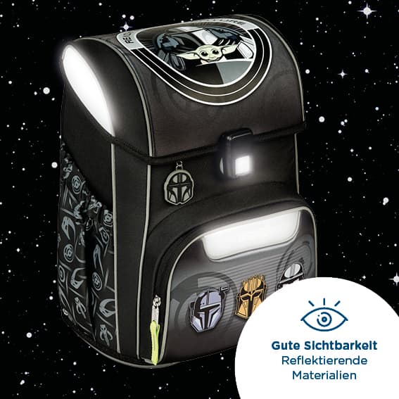 Mit seinem galaktischen Star Wars Design mit Baby Yoda Grogu ist dieser offizielle Lizenz-Schulranzen die perfekte Wahl für alle Fans der Star Wars Reihe.