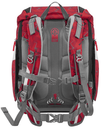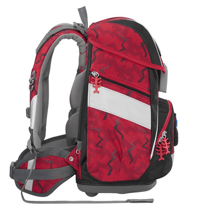 Tragekomfort/Ergonomie Anatomisch geformte Schulterträger, höhenverstellbar (EASY GROW SYSTEM) Lageverstellriemen Höhenverstellbarer, abnehmbarer Brustgurt Abnehmbarer Hüftgurt Ergonomisch geformte Rückenpartie Atmungsaktives Rückenpolster Verstaumöglichkeiten Hauptfach Nach außen wachsende Vordertasche mit Auslaufösen Zwei nach außen wachsende Seitentaschen mit Reißverschluss Inneneinteiler mit Gummizug für Bücher Sicherheit Reflektierende Elemente aus an Fronttasche, Seitentaschen und Schultergurten Weitere Features Herausnehmbare Verstärkungen (Malschablone) Leicht bedienbarer Fidlock-Magnetverschluss Aufhängungen zum Verstauen der Enden der Schulterriemen Verstärkter Tunnelzug am Rücken zur kindgerechten Bedienung Aufhängeschlaufe Names- und Adressfeld im Deckel Stabile, wasserdichte Bodenplatte