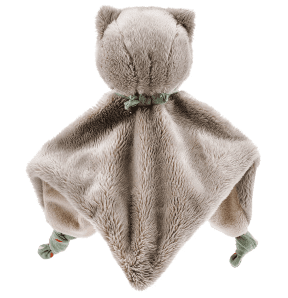 Niedliches Schnuffeltuch Katze Lilly mit Rassel und Knotendetail