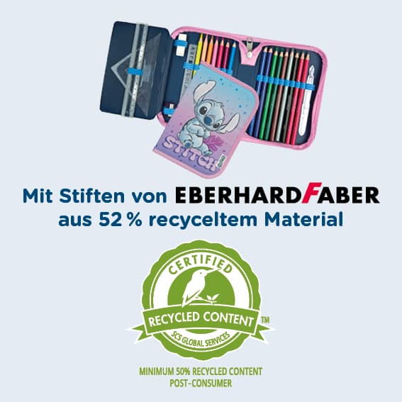 Die Stifte bestehen zu 52% aus recyceltem Material, sodass Kinder beim Malen kreativ werden und gleichzeitig die Umwelt unterstützen. Das Mäppchen ist mit dem frechen Außenseiter gestaltet, der die Kindern beim Lernen, Malen und Basteln begleitet. Ob zu Hause, in der Schule oder unterwegs, alles ist griffbereit und ordentlich verstaut. Ein ideales Geschenk für alle jungen Disney Lilo und Stitch-Fans, die Spaß an Farben, Kreativität und ihrem Lieblingscharakter haben.