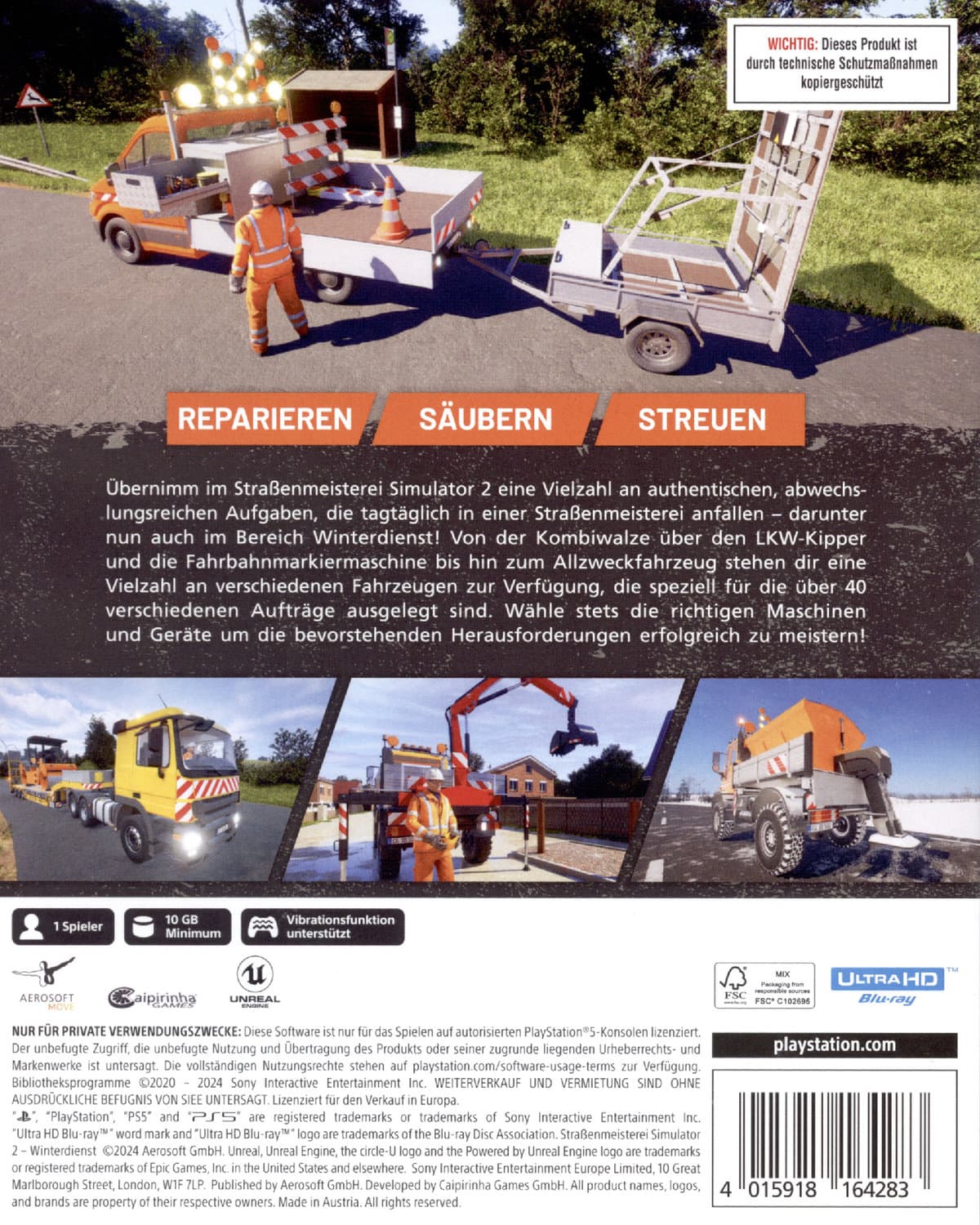 Im Straßenmeisterei Simulator 2 erwarten dich über 40 abwechslungsreiche Aufträge. Von Kontrollfahrten und dem Anbringen von Fahrbahnmarkierungen bis hin zum Beschneiden von Bäumen erwarten dich viele Stunden Spielspaß.