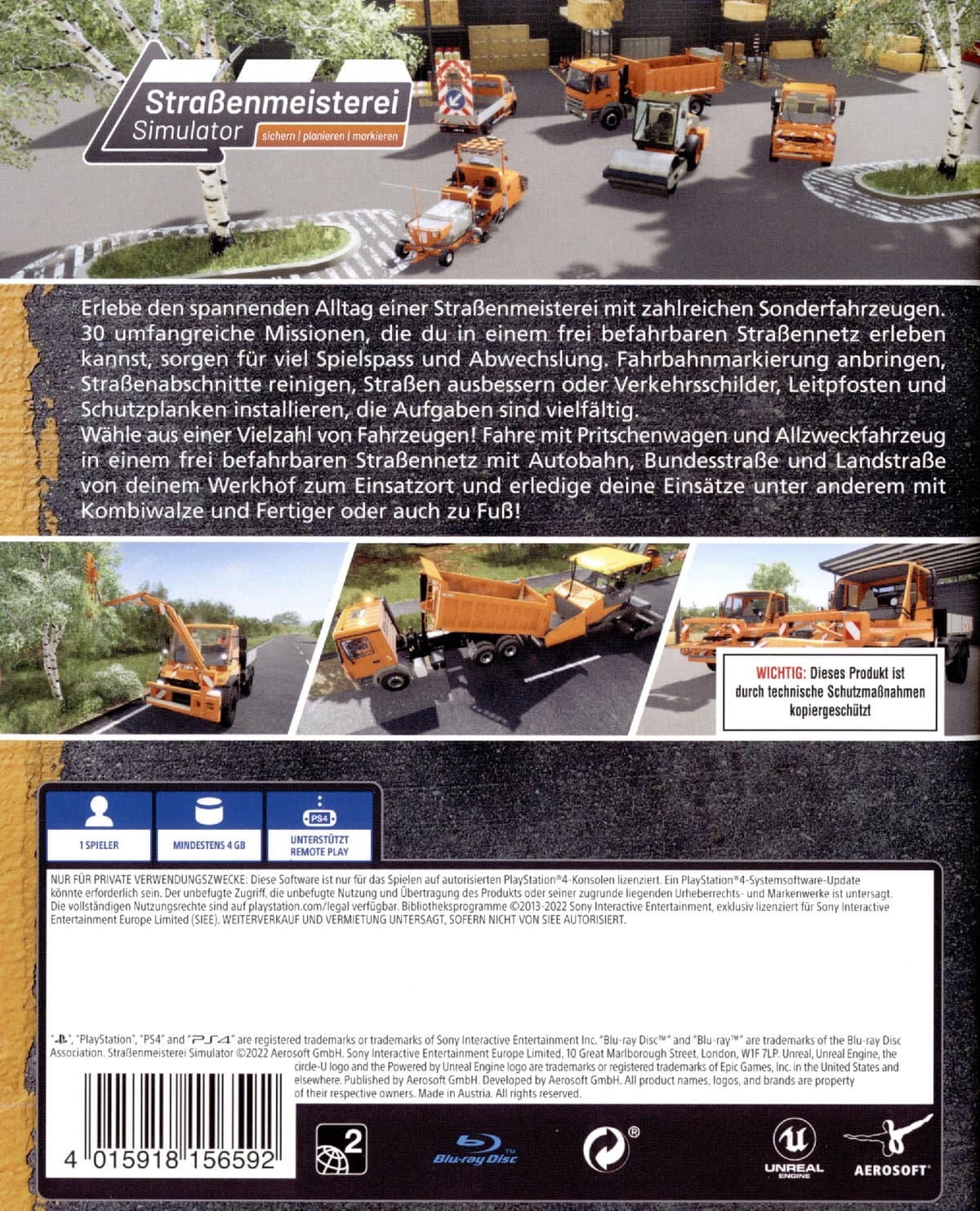 Zahlreiche Aufgaben erwarten Dich! Im Straßenmeisterei-Simulator erwarten dich 30 umfangreiche Missionen in einem frei befahrbaren Straßennetz. Bewältige in deinem Arbeitsalltag vielseitige, spannende Aufgaben, unter anderem Fahrbahnmarkierungen anbringen, Straßenabschnitte mit Baken absichern, Bäume beschneiden, Schutzplanken und Streckenabschnitte reinigen, Straße ausbessern, Verkehrsschilder, Schutzplanken und Leitpfosten anbringen und natürlich Straßen ausbessern.