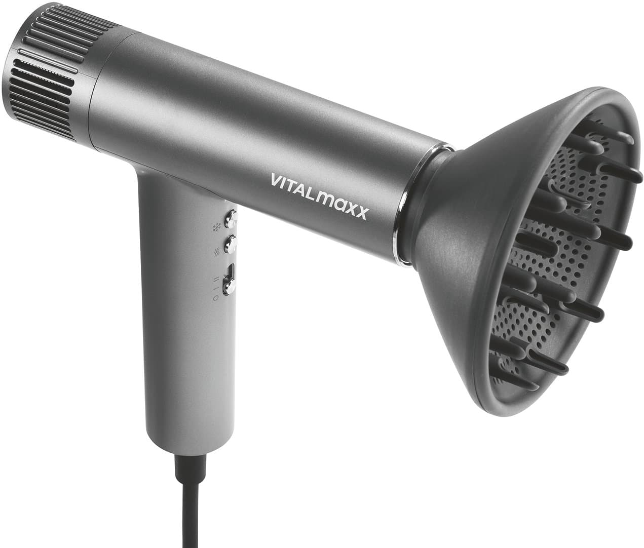 On top besticht der Haartrockner durch sein luxuriöses Slim-Design und einen leisen Betrieb von nur 74 dB. Dazu wird der Haartrockner für alle Haartypen und -längen inkl. Diffuser und Konzentrator für vielseitige Looks geliefert. Hol dir die perfekte Balance aus High-Tech und Komfort und genieße ein schnelleres, entspannteres, leiseres und schonenderes Trocknen deiner Haare – mit dem langlebigen STYLE & SHINE by VITALmaxx Slim Hairdryer.