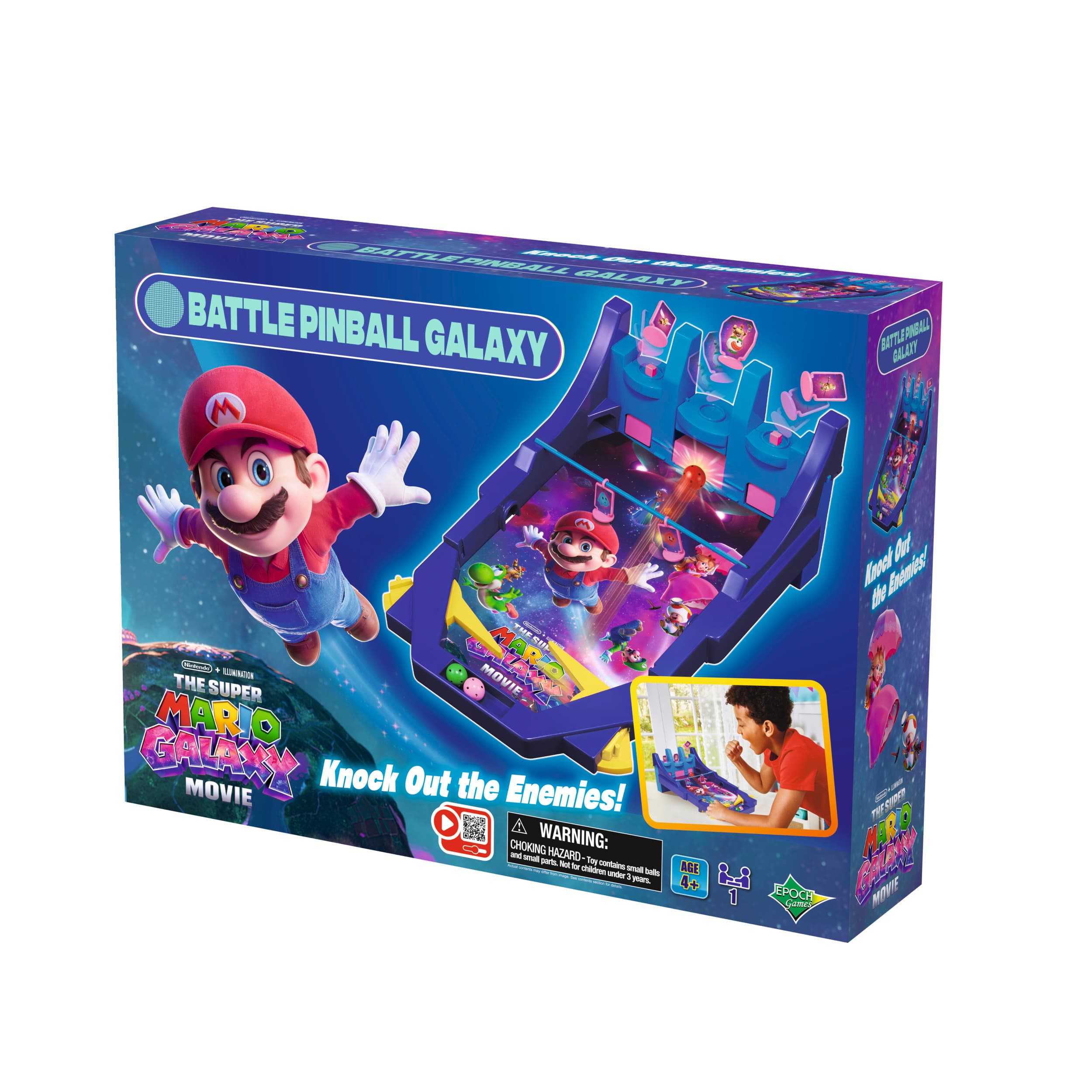 Großer Flipper-Spaß mit Mario & Co mit dem Super Mario Galaxy Movie Battle Pinball Game. Der Super Mario Battle Pinball von EPOCH Games bringt das klassische Flippergefühl nach Hause. Im farbenfrohen Design passend zum neuen Kinoabenteuer Super Mario Galaxy (Kinostart: 2. April 2026). Wie beim großen Vorbild werden die Kugeln über zwei Hebel gesteuert. Ziel ist es, alle Gegner auf der rechten und linken Seite zu treffen, bevor Bowser Jr. angreifbar wird. Erst wenn die Hindernisse besiegt sind, kann der finale Treffer erzielt werden und Bowser Jr. wird aus dem Spielfeld geschleudert! Drei Kugeln, mehrere Ziele und flinke Finger sorgen für anhaltende Spannung. Ein unterhaltsamer Tisch-Flipper für kleine und große Super Mario™ Fans, der ganz ohne Batterien auskommt und sofort spielbereit ist. Perfekt für 1 Spielenden ab 4 Jahren.