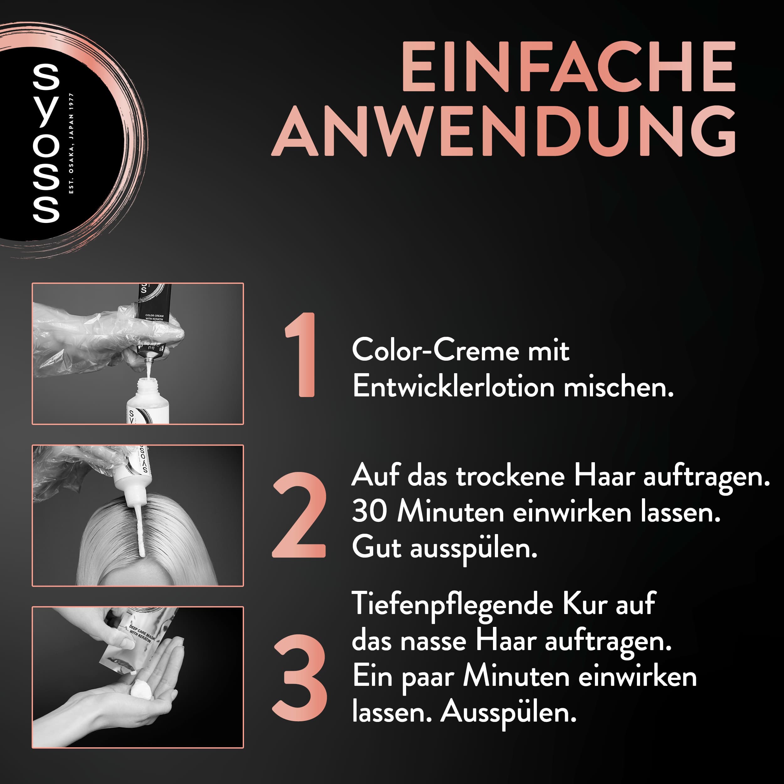 - Einfache Anwendung – Mit der permanenten Coloration von SYOSS gelingt eine präzise Anwendung ohne Tropfen für professionelle Farbergebnisse. Packungsbeilage beachten