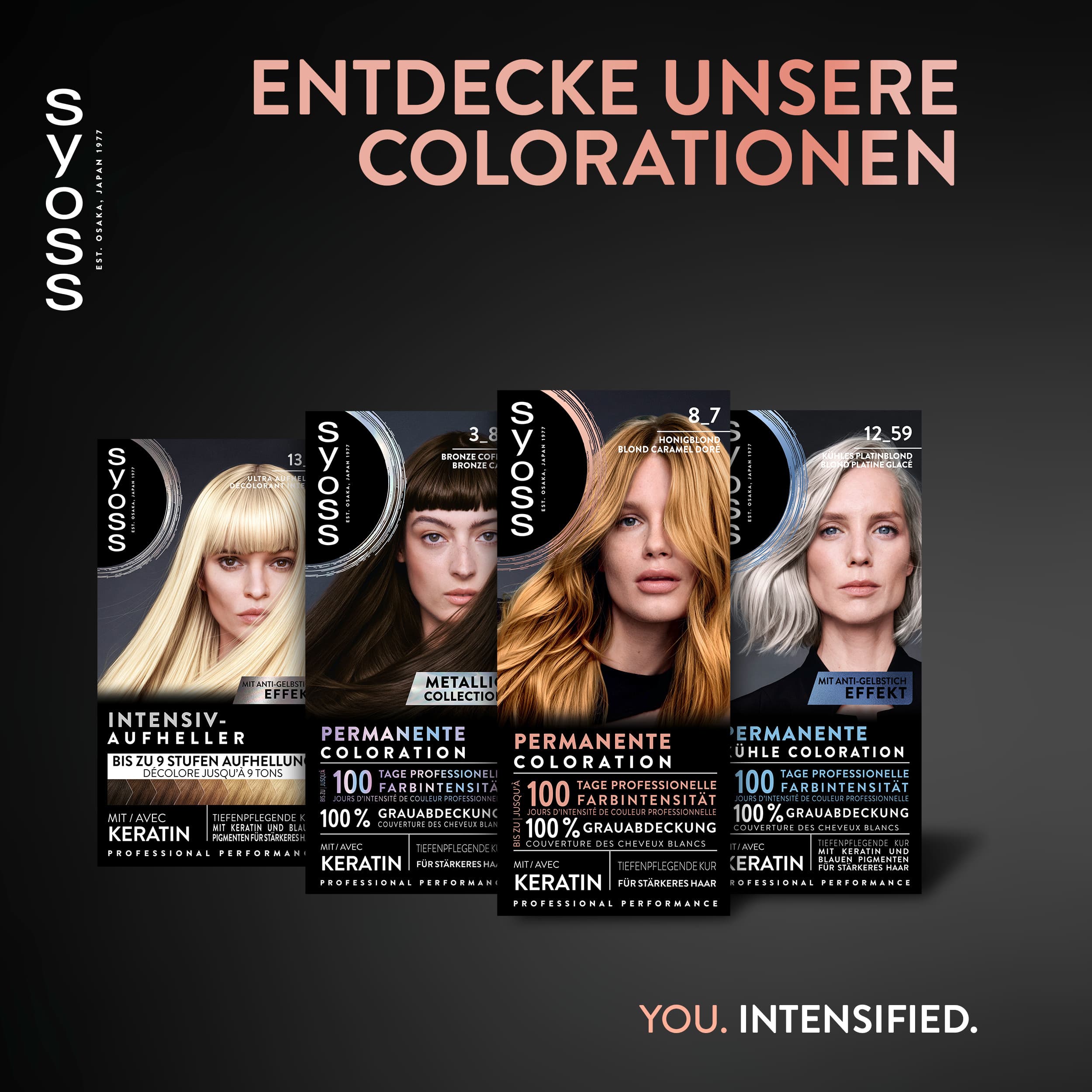 • SYOSS Sortiment – Entdecke das komplette SYOSS Sortiment und wähle die passende Nuance aus den unterschiedlichen Haarfarben aus