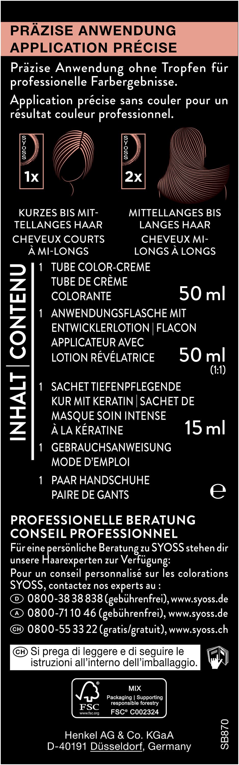 • Einfache Anwendung – Mit der permanenten Coloration von SYOSS gelingt eine präzise Anwendung ohne Tropfen für professionelle Farbergebnisse. Packungsbeilage beachten