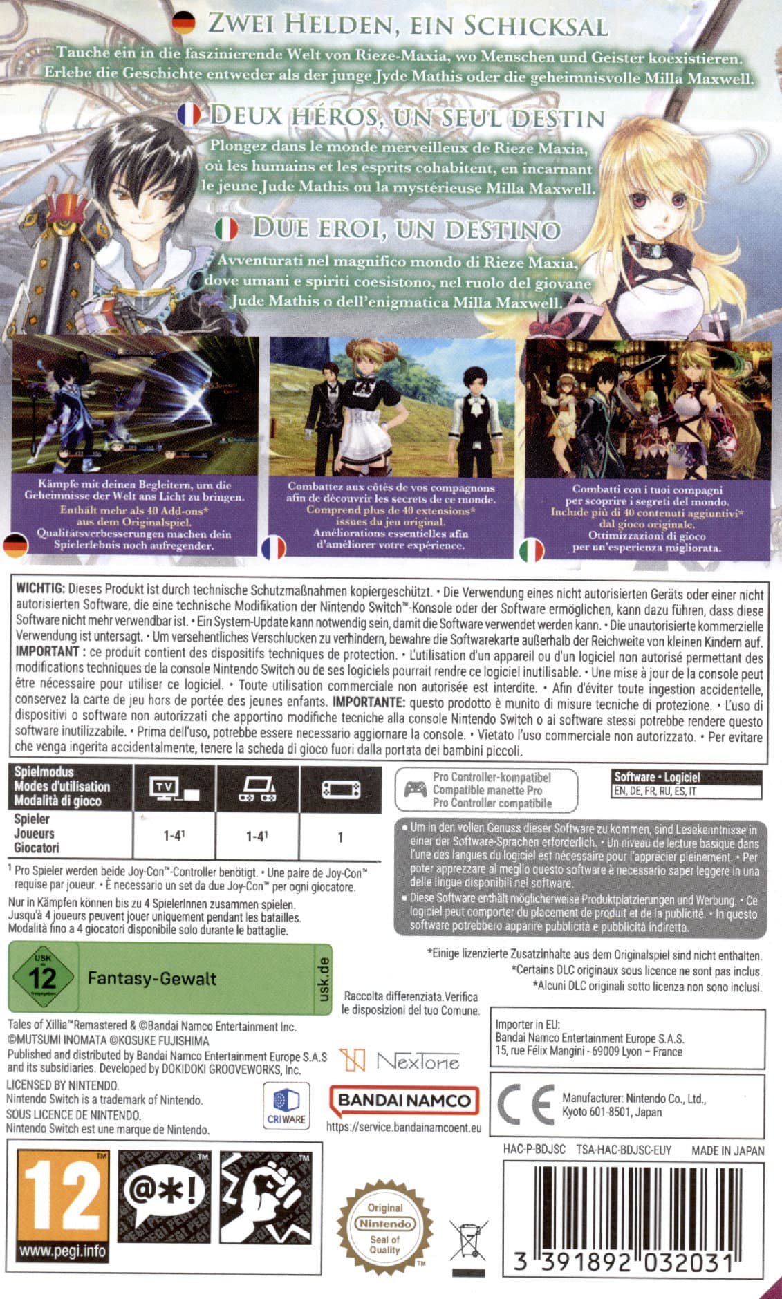 Erlebe Tales of Xillia, zum ersten Mal vollständig überarbeitet. Tauche ein in die faszinierende Welt von Rieze-Maxia und erlebe die Geschichte entweder als Jyde Mathis, einen ehrgeizigen Medizinstudenten aus der Hauptstadt, oder als Milla Maxwell, eine geheimnisvolle Frau, die von vier mächtigen Geistern umgeben wird. Zu Beginn deines Abenteuers wählst du, ob du die Geschichte aus der Perspektive von Milla oder Jyde erleben willst. Schon nimmt das Spiel dich mit auf eine epische Reise durch die lebendige Welt von Rieze-Maxia, in der Menschen und Geister harmonisch zusammenleben. Doch der Frieden ist in Gefahr. Das Königreich Rashugal beginnt, eine geheimnisvolle mächtige Maschine einzusetzen, die der Welt ihr Mana raubt – die Essenz von jeglichem Leben. Fest entschlossen, die Vernichtung aufzuhalten und das Gleichgewicht wiederherzustellen, machen Milla und Jyde sich auf eine waghalsige Mission, um die Maschine zu zerstören und ihre Welt zu retten. Zwei Helden, ein Schicksal Folge dem Pfad von Milla und Jyde auf ihrer waghalsigen Reise durch Rieze-Maxia, ein wundersames Land, in dem Menschen und Geister in Harmonie koexistieren. Tu dich dank Dual Raid zusammen Meistere das Dual Raid Linear Motion-Kampfsystem, um mit Strategie und Koordination die actionreichen Echtzeitkämpfe zu bestehen. Tu dich mit Verbündeten zusammen, um vernichtende Komboangriffe zu entfesseln und besondere Unterstützungsfertigkeiten freizuschalten, mit denen du die Gegner überwältigst. Qualitätsverbesserungen Erkunde die Spielewelt mit zahlreichen Qualitätsverbesserungen, unter anderem verbesserter Grafik, einer automatischen Speicherfunktion, der Option, Zufallsbegegnungen auszuschalten, frühem Zugang zum Laden und mehr. Ein Rundum-Erlebnis Xillia Remastered enthält Zusatzinhalte, die zusammen mit der Originalveröffentlichung eingeführt wurden, darunter Kostüme, nützliche Objekte und andere spannende Extras.