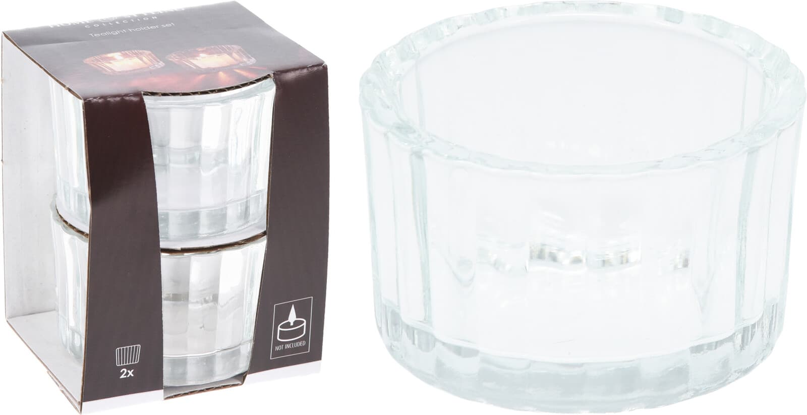 Set bestehend aus zwei transparenten Teelichthaltern, Teelichter nicht inkludiert.